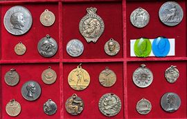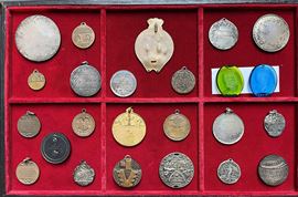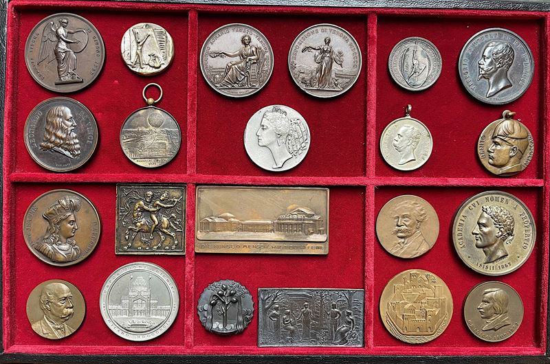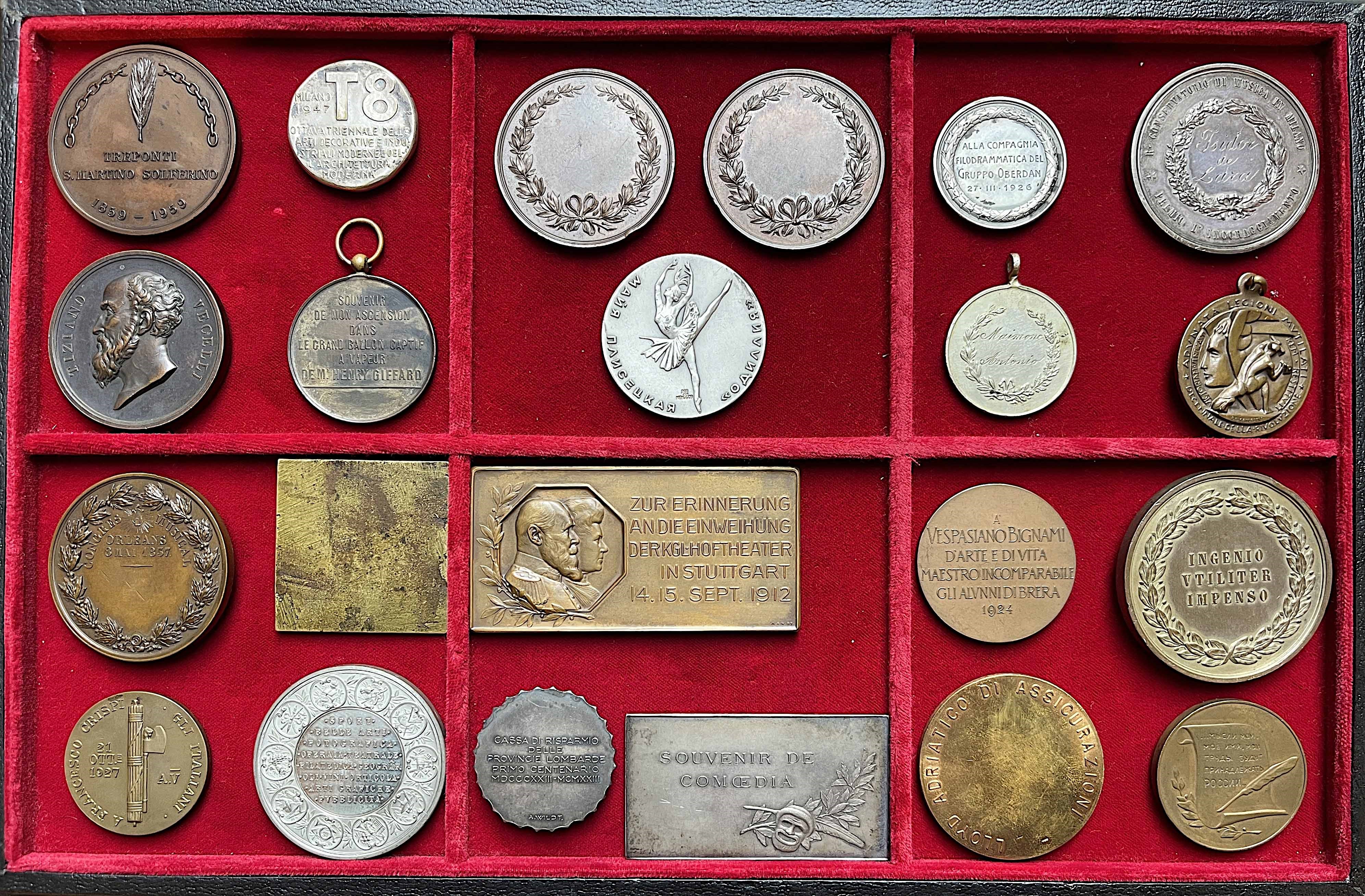 Selezione di esemplari di argomento prettamente culturale, perlopiù italiani del 1900. Notata bella medaglia d’argento di onore della grande ballerina sovietica Maya Plisetskaya (1925-2015). Argento, vetro, bronzo e altri metalli. Conservazione mediamente buona.