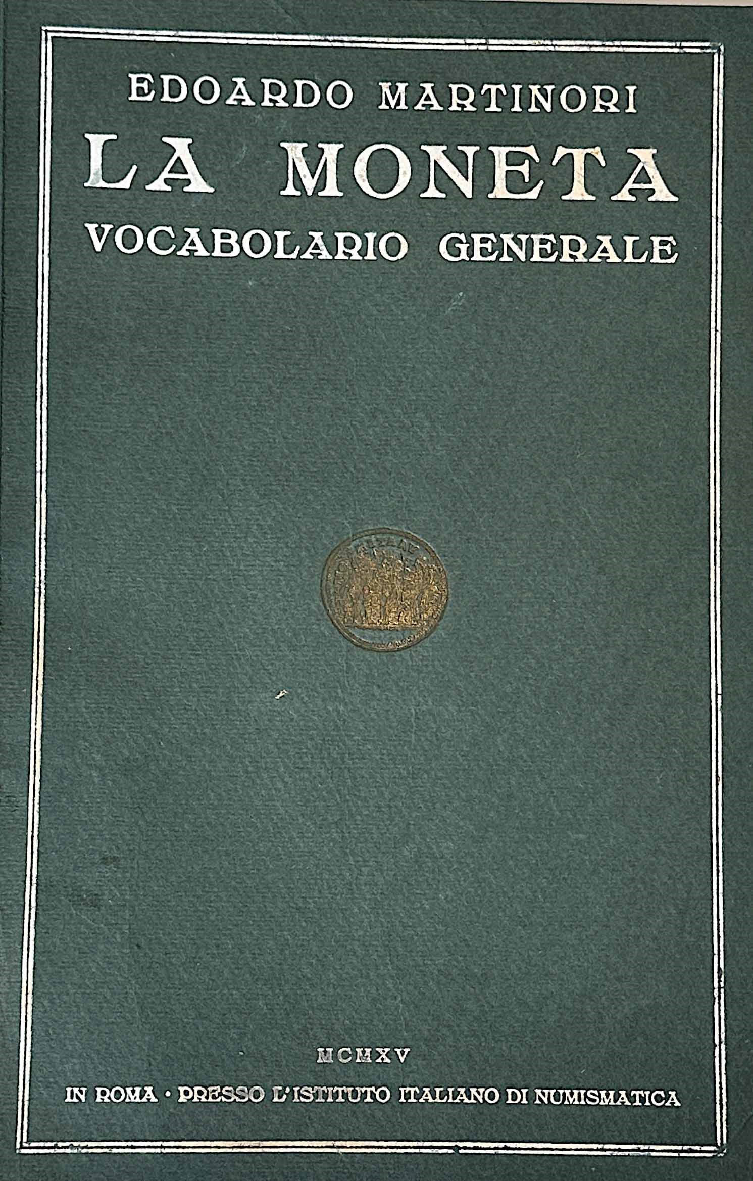 MARTINORI E. La moneta: Vocabolario generale.