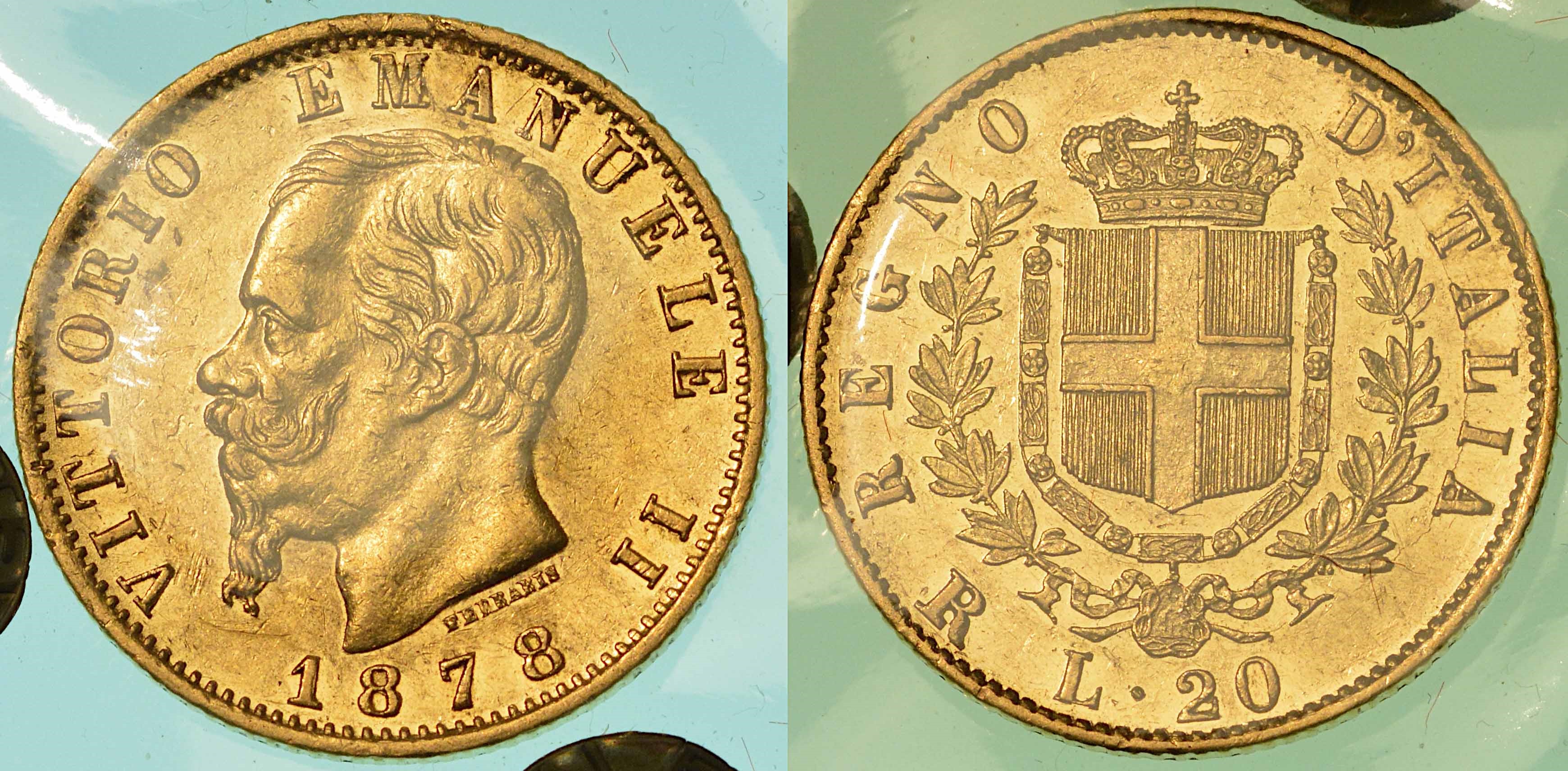 REGNO D'ITALIA. VITTORIO EMANUELE II DI SAVOIA, 1861-1878. 20 Lire 1878. Roma.