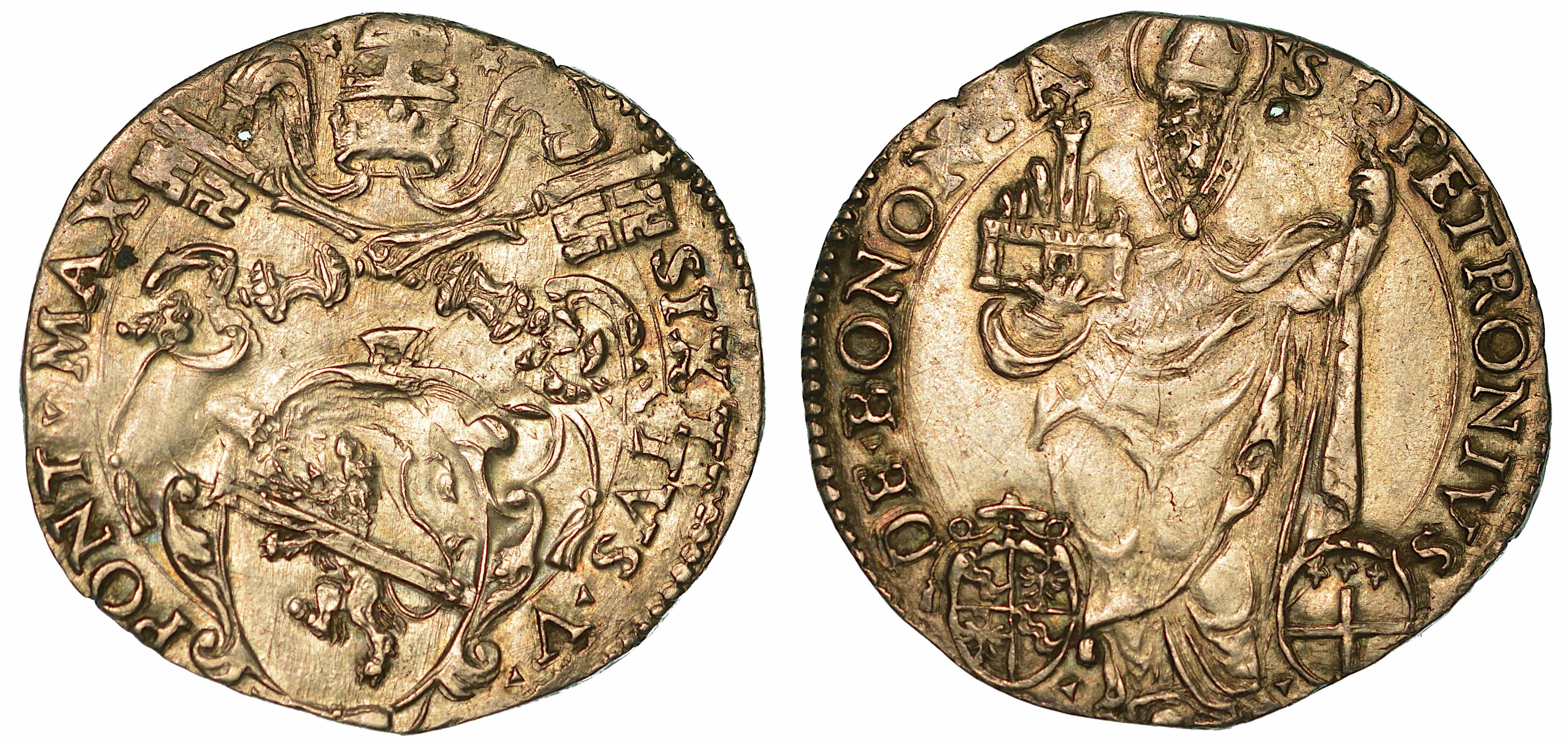 Stemma ovale in cornice. R/ Figura del Santo; in basso, armetta Salviati ed a d. armetta di Bologna. CNI 28. Munt. 100. MIR 1357/2. Raro. g. 3,35. Diam. mm. 25,57. Arg. Piccolo foro. BB