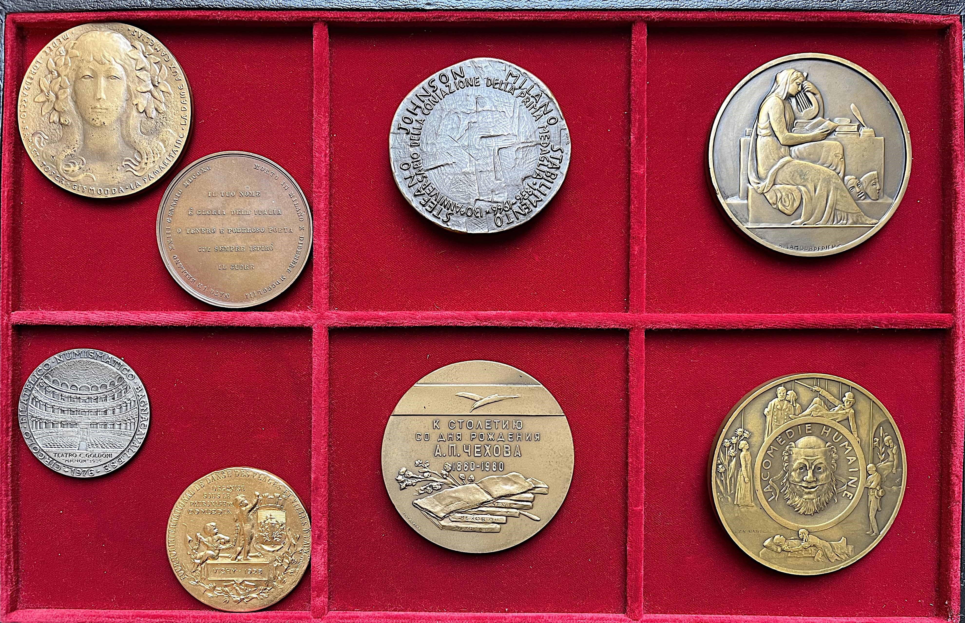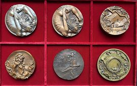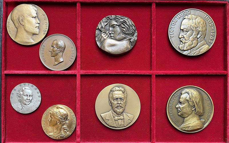 Interessante selezione di esemplari di argomento artistico e culturale del 1900. Argento, bronzo e altri metalli. Moduli medi e grandi. Conservazione mediamente molto buona.