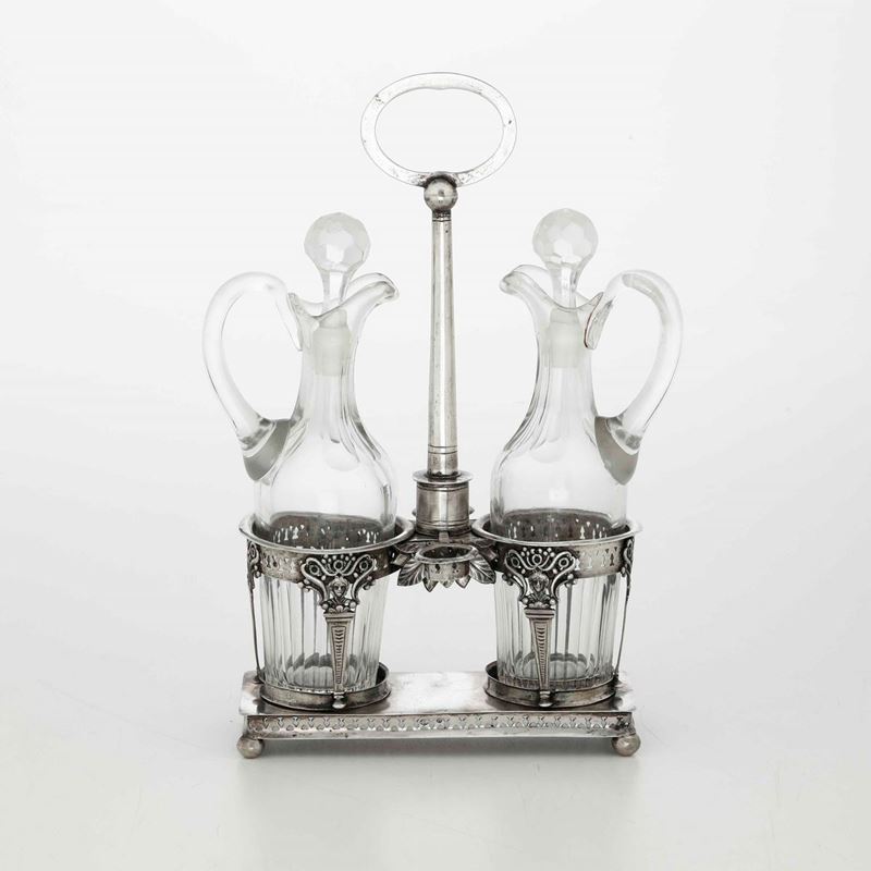 Acetoliera. Argento fuso, sbalzato e traforato. Genova XIX secolo. Marchio con delfino e croce mauriziana in uso dal 1825 al 1872