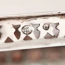 Acetoliera. Argento fuso, sbalzato e traforato. Genova XIX secolo. Marchio con delfino e croce mauriziana in uso dal 1825 [..]