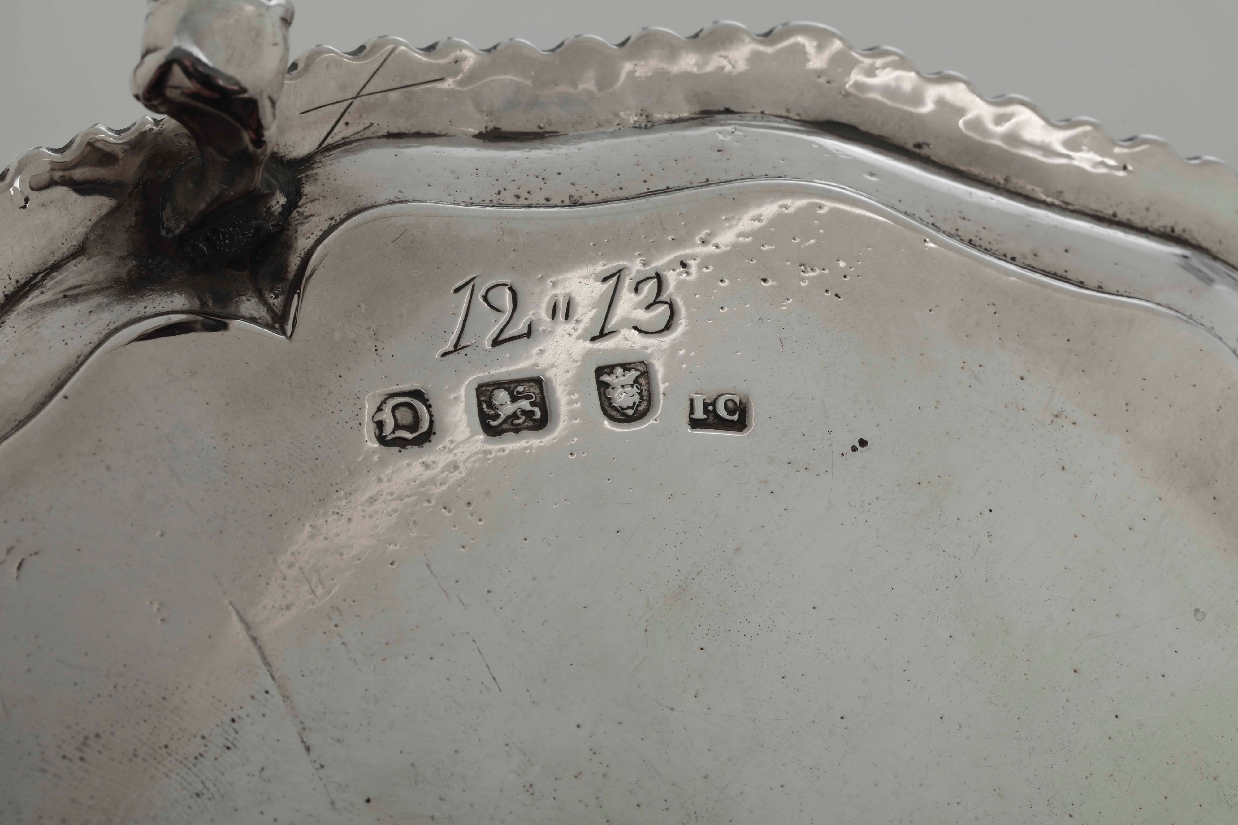 Coppia di salver. Argento fuso, sbalzato e cesellato. Londra 1759. Marchi dell’argentiere IC (John Carter documentato dal 1797, probabile autore degli stemmi incisi in epoca posteriore)