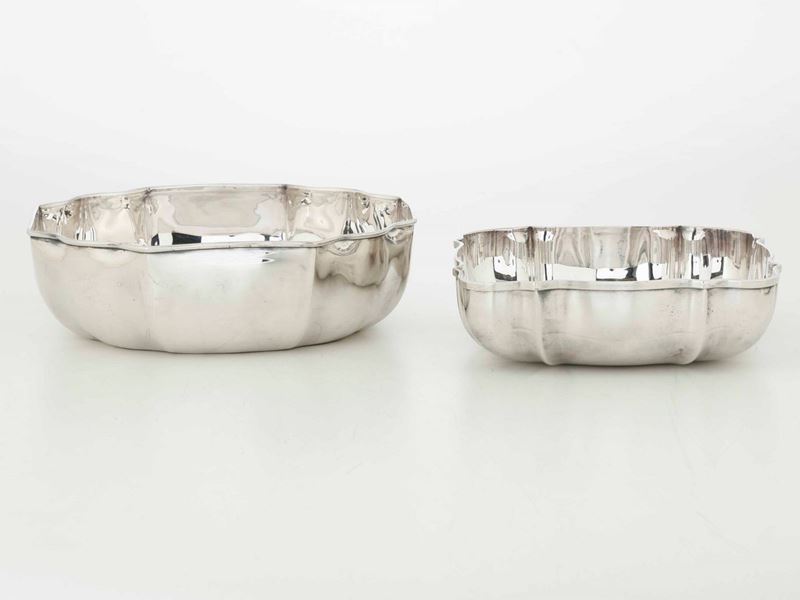 Due bacinelle. Argento fuso e sagomato. Argenteria veneta del XX secolo