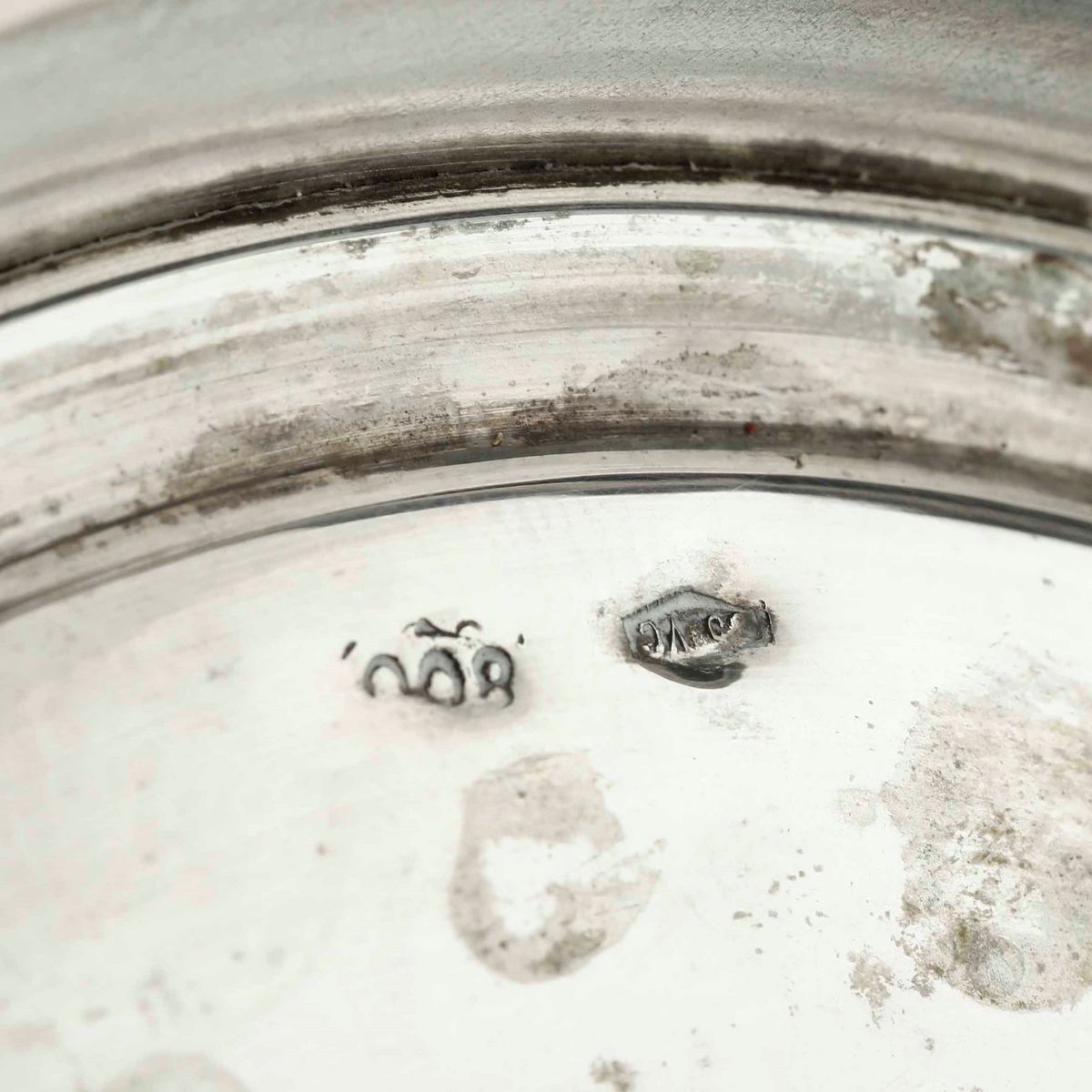 Insieme di piatto, alzata, zuccheriera e candelabro in argento. Varie manifatture italiane del XX secolo