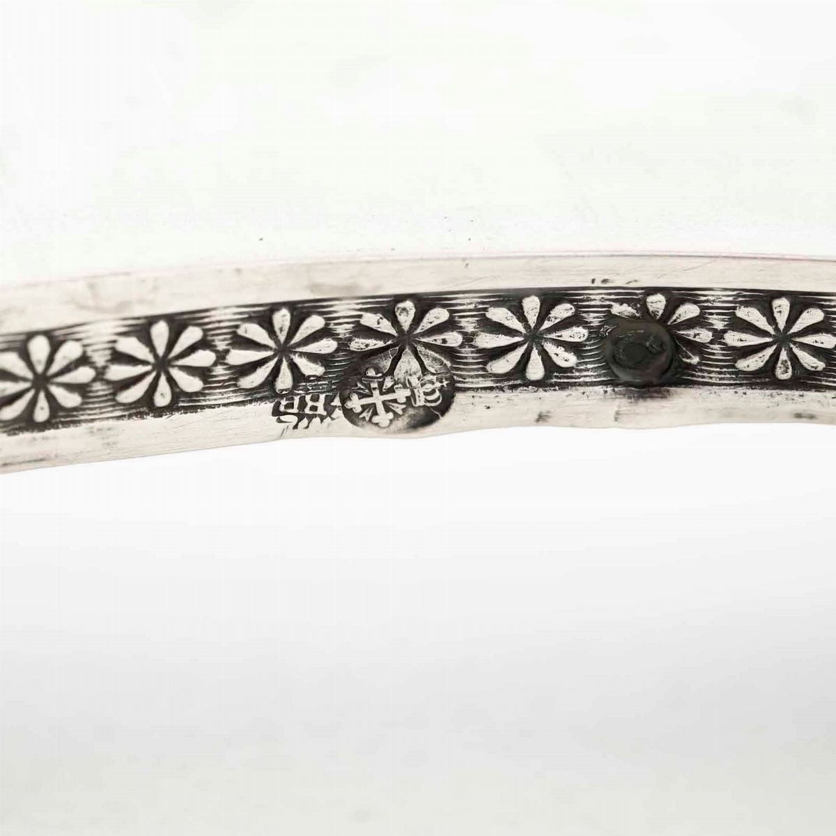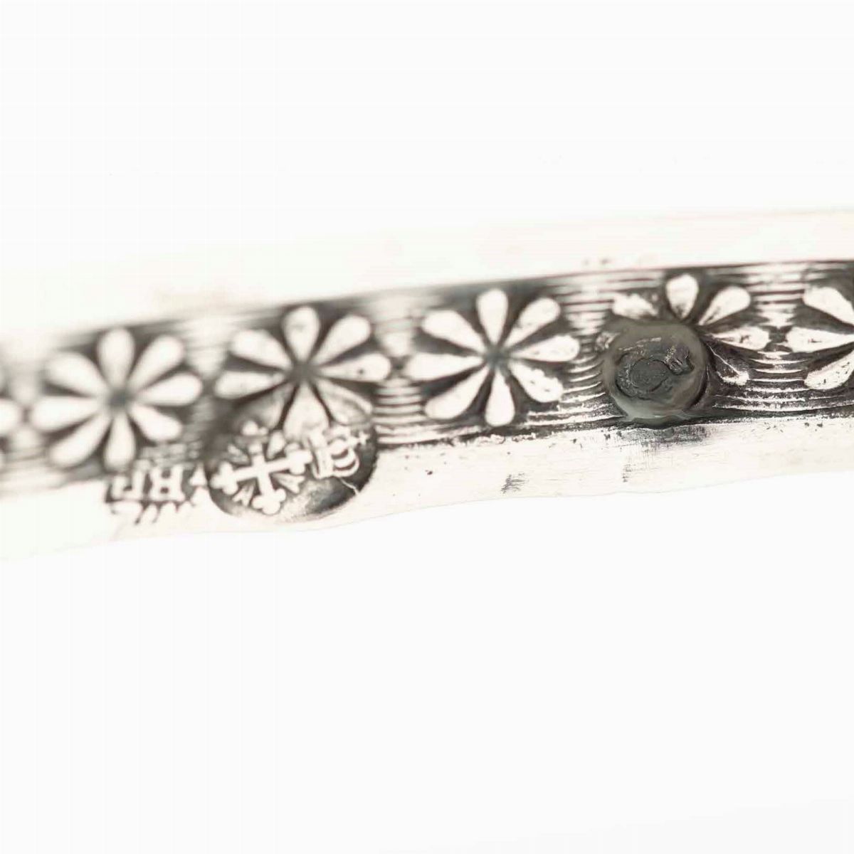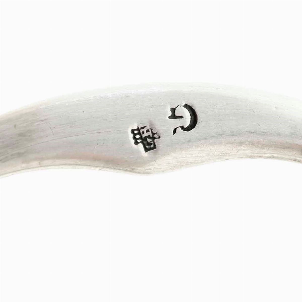 Oliera. Argento fuso, sagomato e cesellato. Genova XIX secolo. Marchio con croce mauriziana, delfino arrotondato e argentiere BR (non identificato)