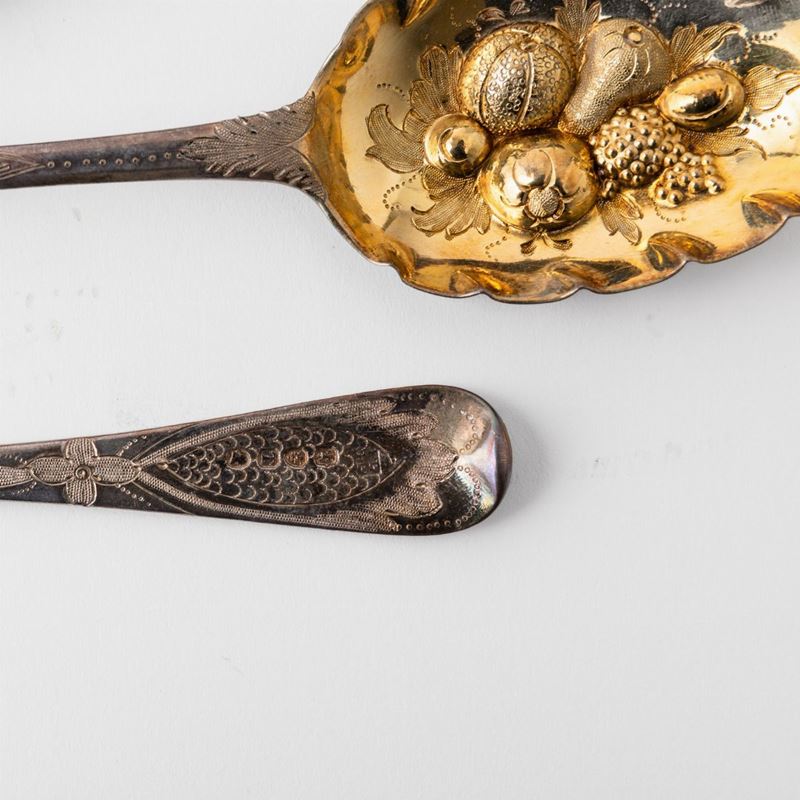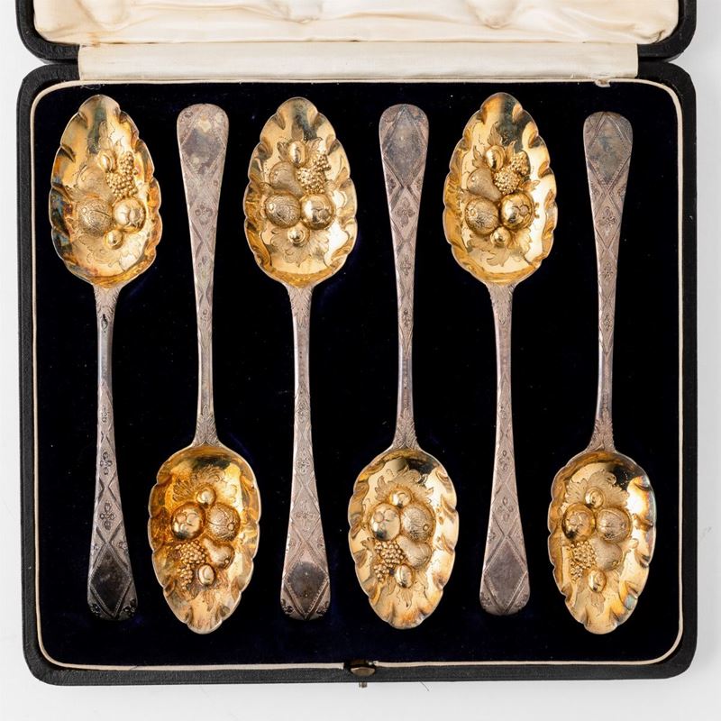 Sei cucchiai. Argento fuso, sagomato e cesellato. Bollo della città di Londra per l'anno 1815