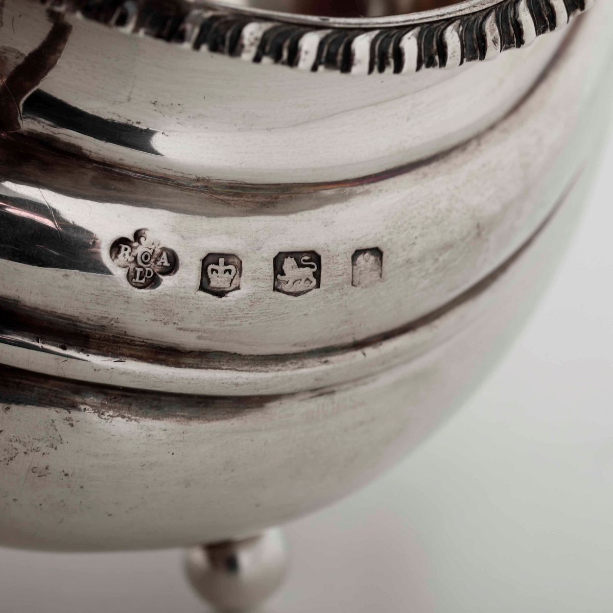 Servizio da tè Argento fuso, finimenti in legno sagomato e ebanizzato. Marchi della città di Sheffield per l’anno 1926 e dell’argentiere (non identificato)