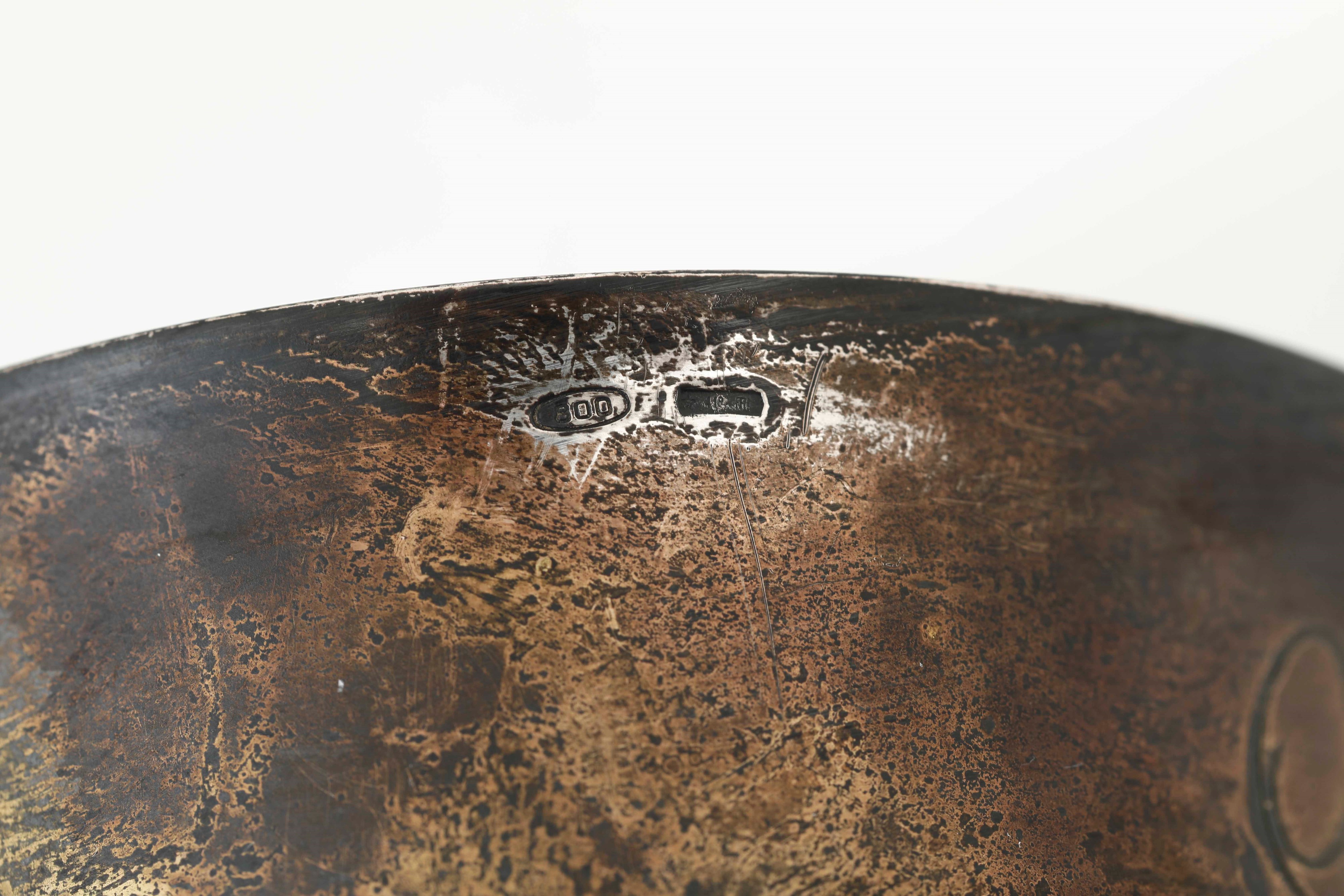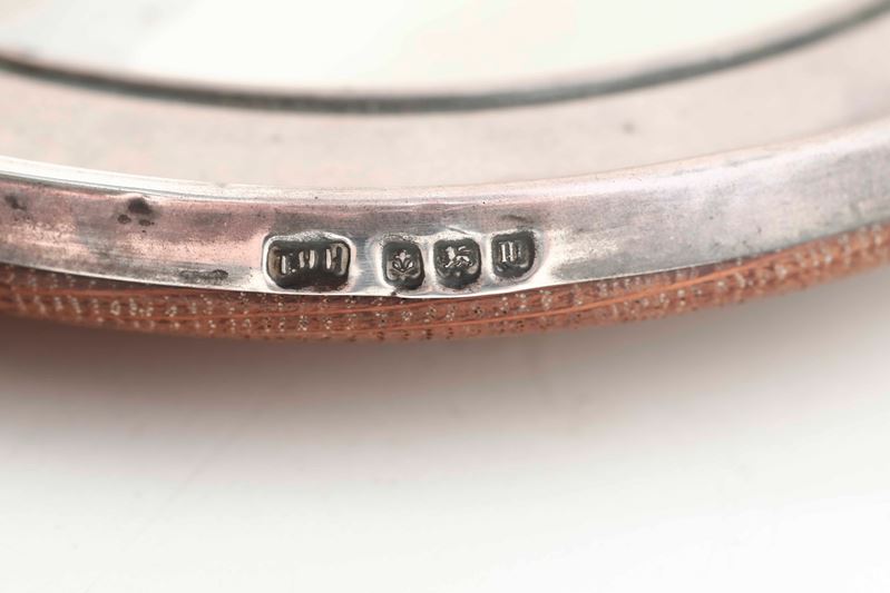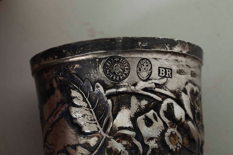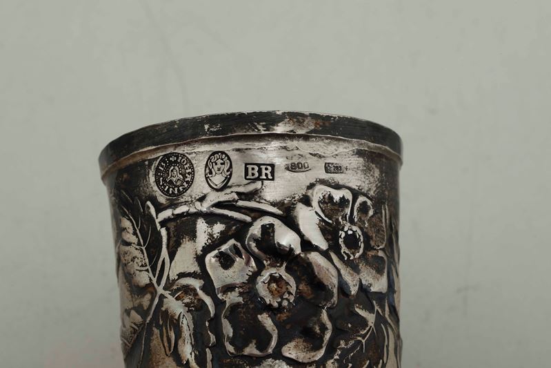 Lotto di cornice circolare e tre bicchierini in argento