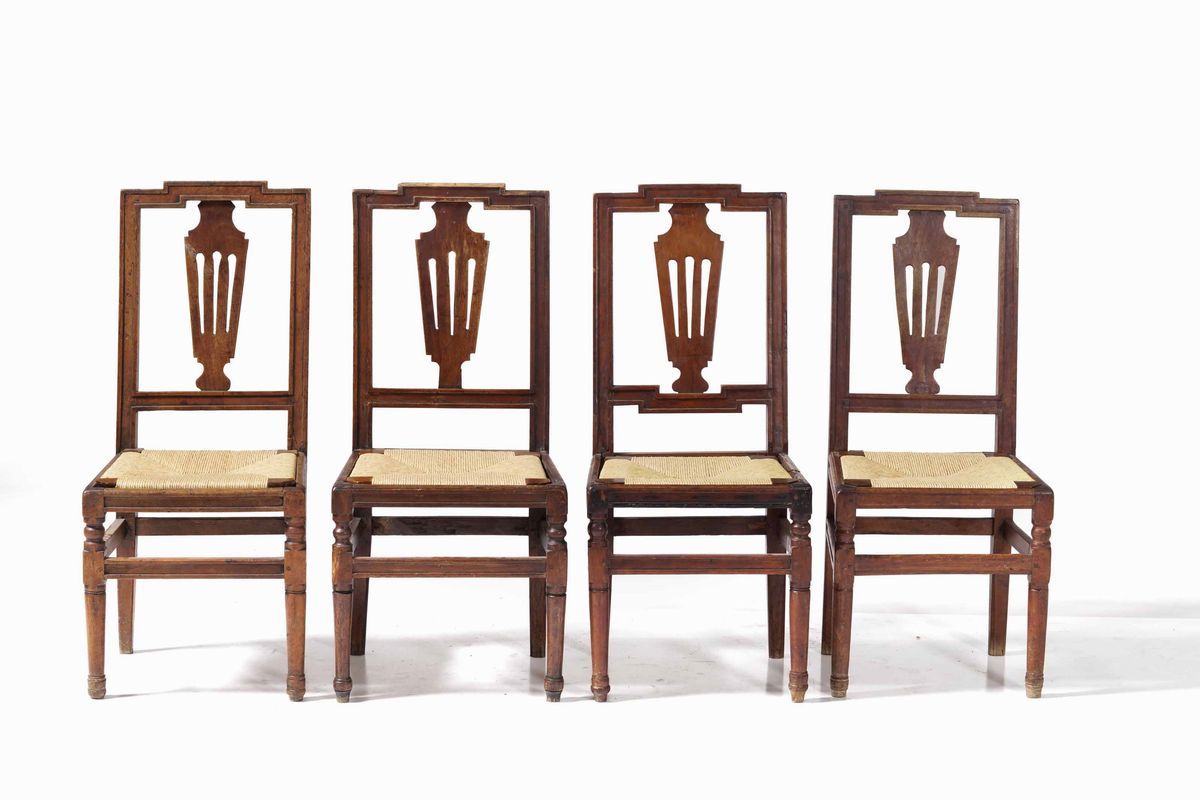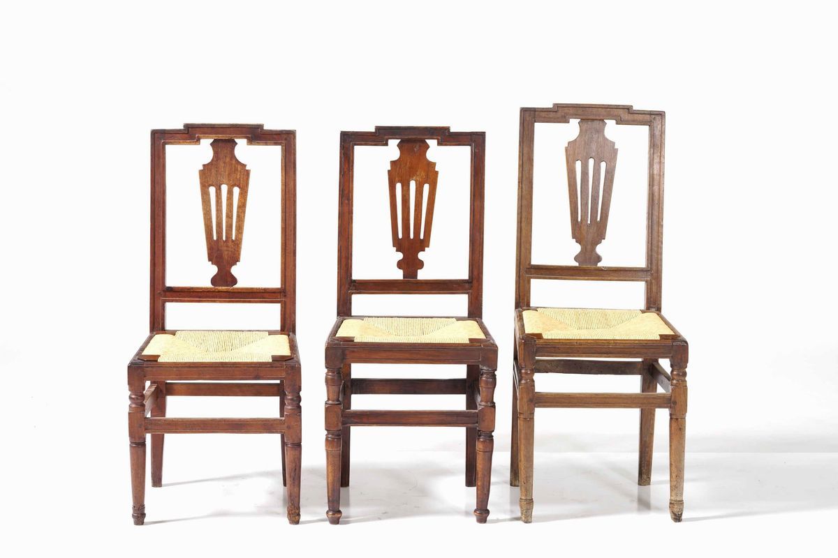 sette sedie Luigi XVI in noce. Piemonte, XVIII secolo