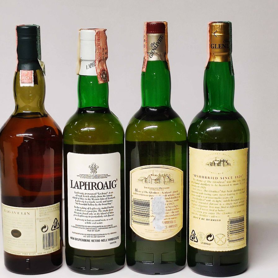 Lagavulin, Laphroaig, Glenlivet, Single Malt Whisky