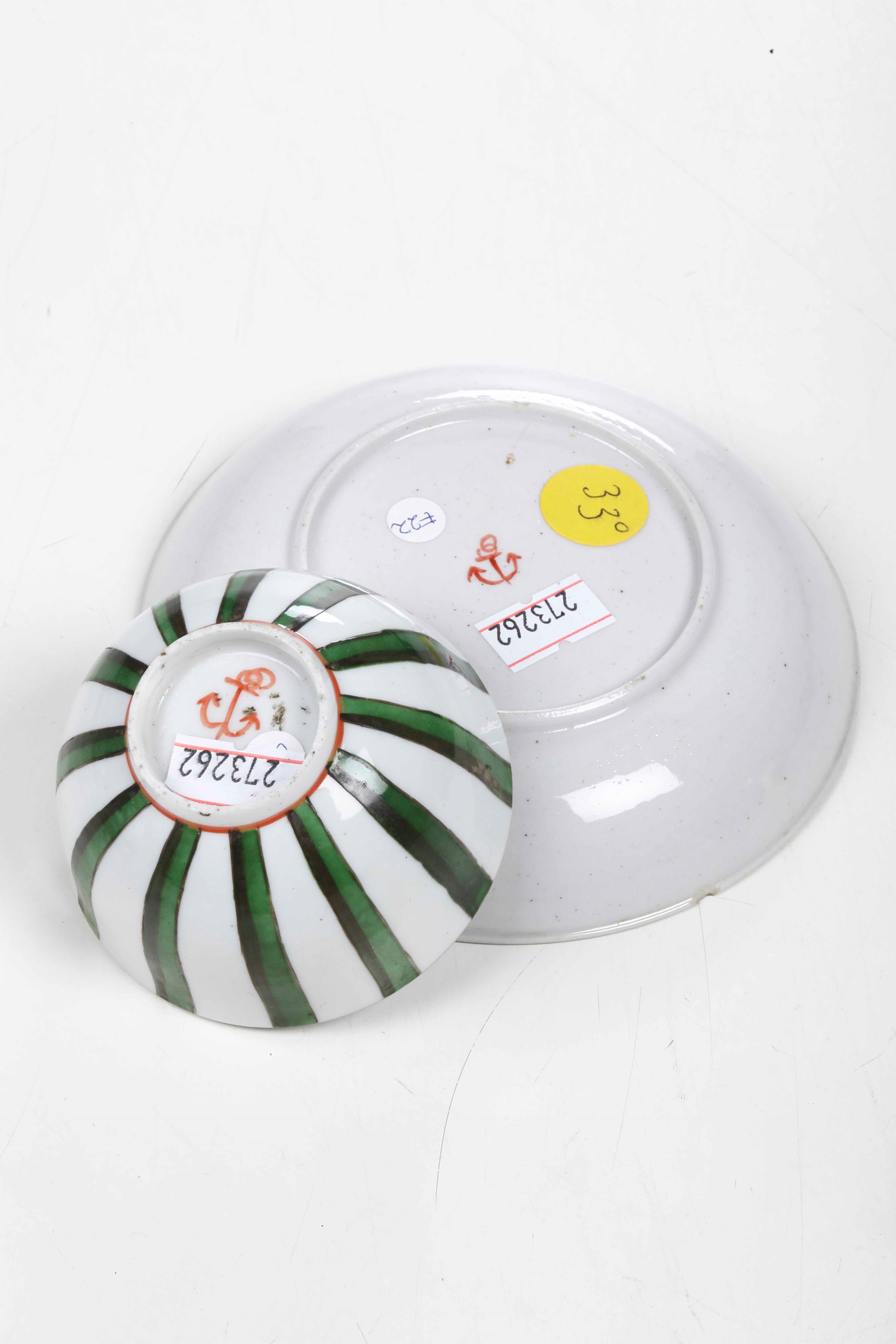 Porcelain. Brand: anchor in red. Dimensions: cup height 4.1 cm; saucer diameter 12.4 cm. Conservation: insignificant felting to the upper edge of the cup; very small chipping to the edge of the saucer