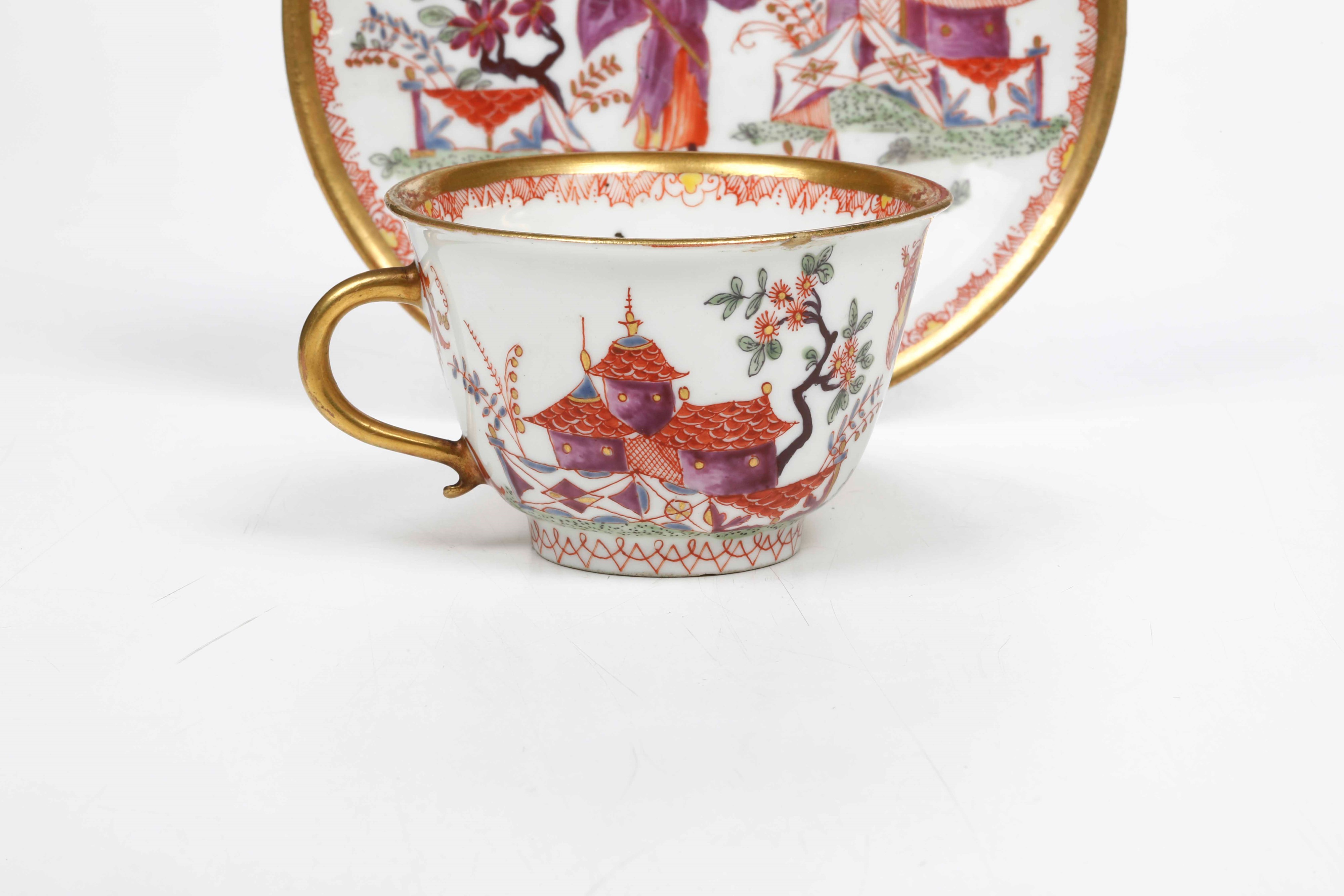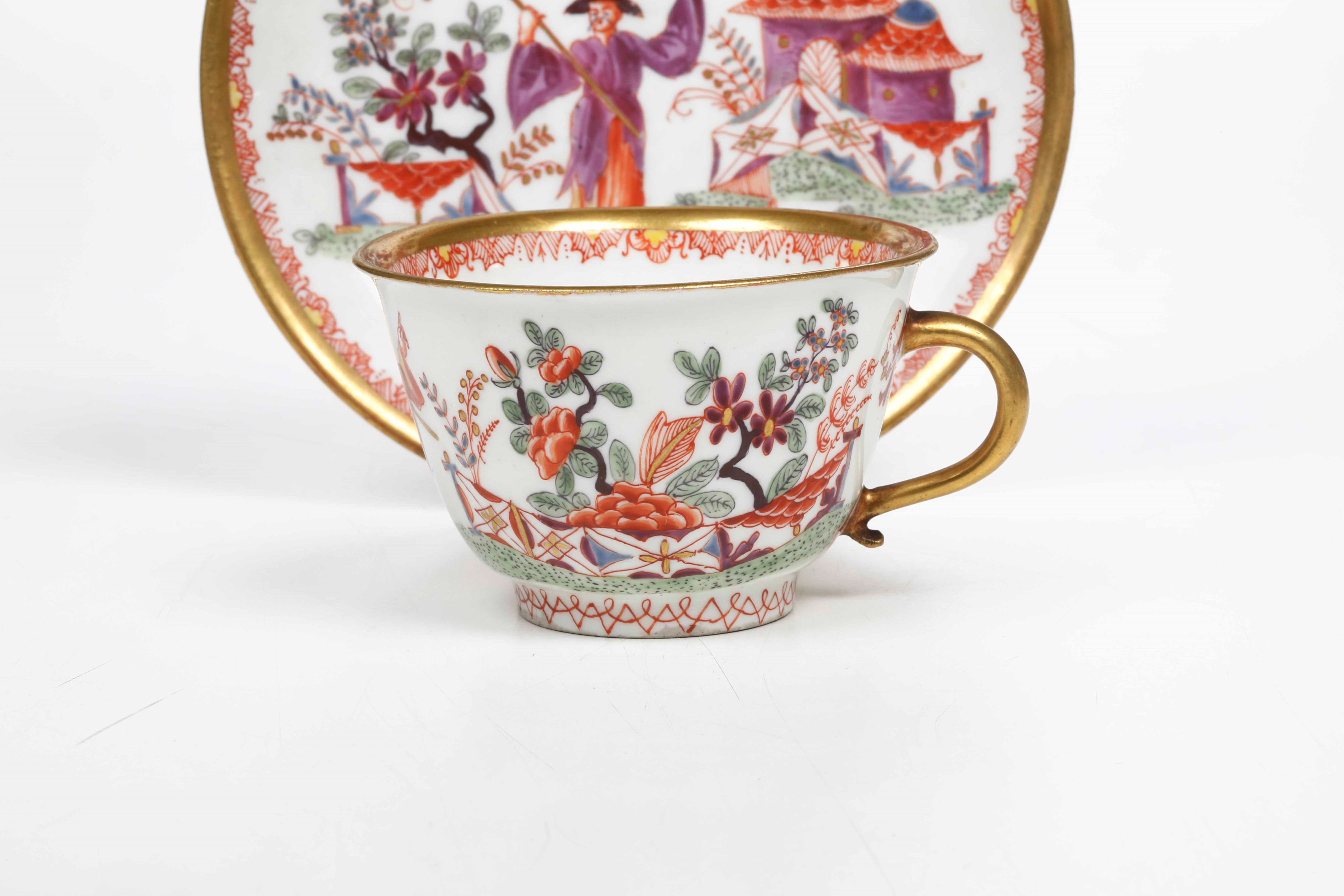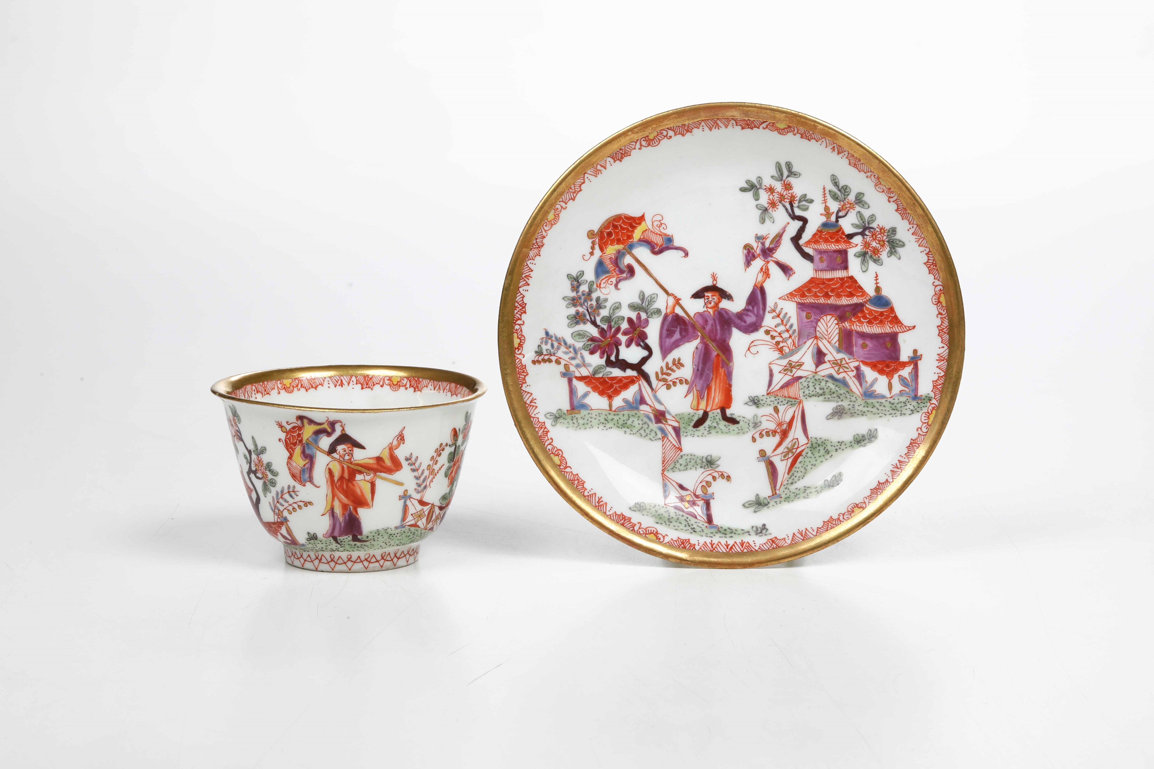 Cup and saucer Meissen (?), circa 1720-1725Probably Viennese Hausmaler decoration