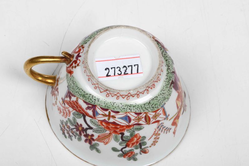 Porcelain. Brand: absent. Dimensions: cup height 4.7 cm; saucer diameter 12.3 cm. Conservation: very good; small chipping on the outer edge of the cup