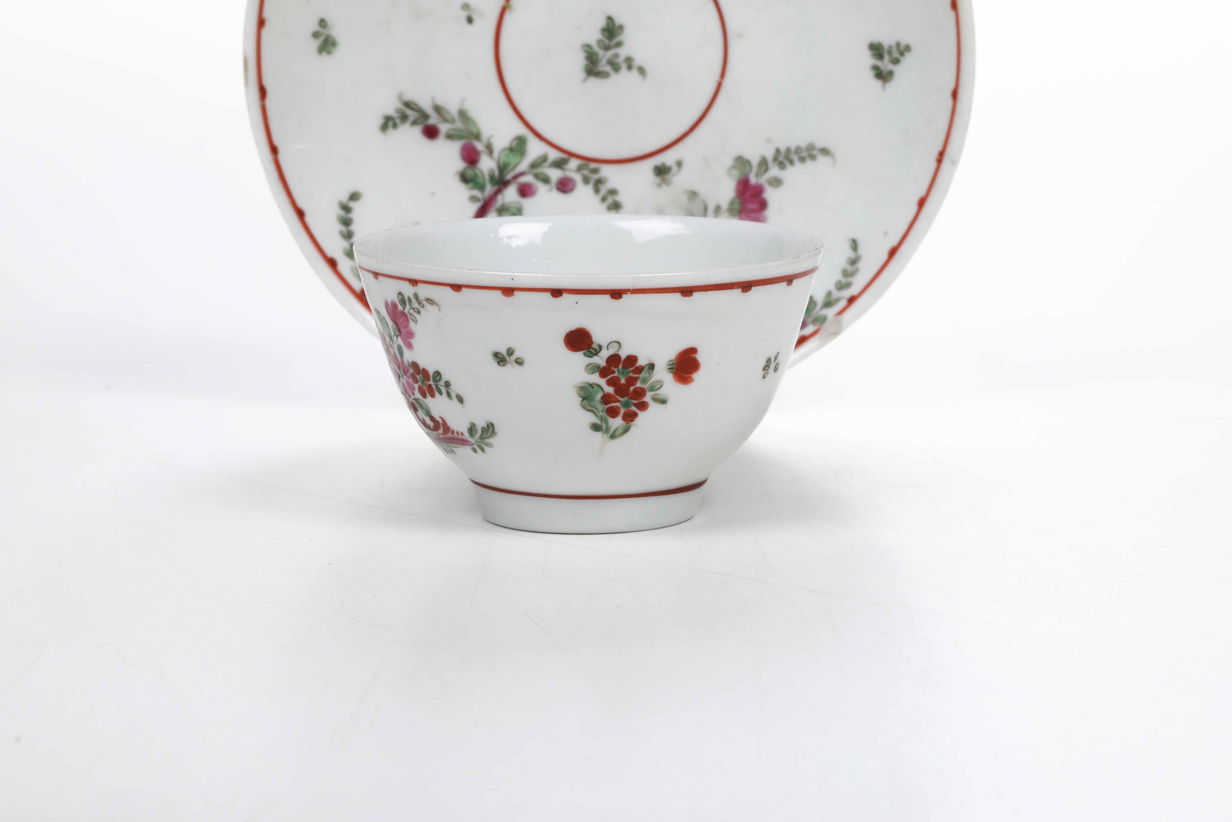 Porcelain. Brand: absent. Dimensions: cup height 3.9 cm; saucer diameter 11.3 cm. Conservation: chipping to the inner rim of the saucer and some wear to the polychrome