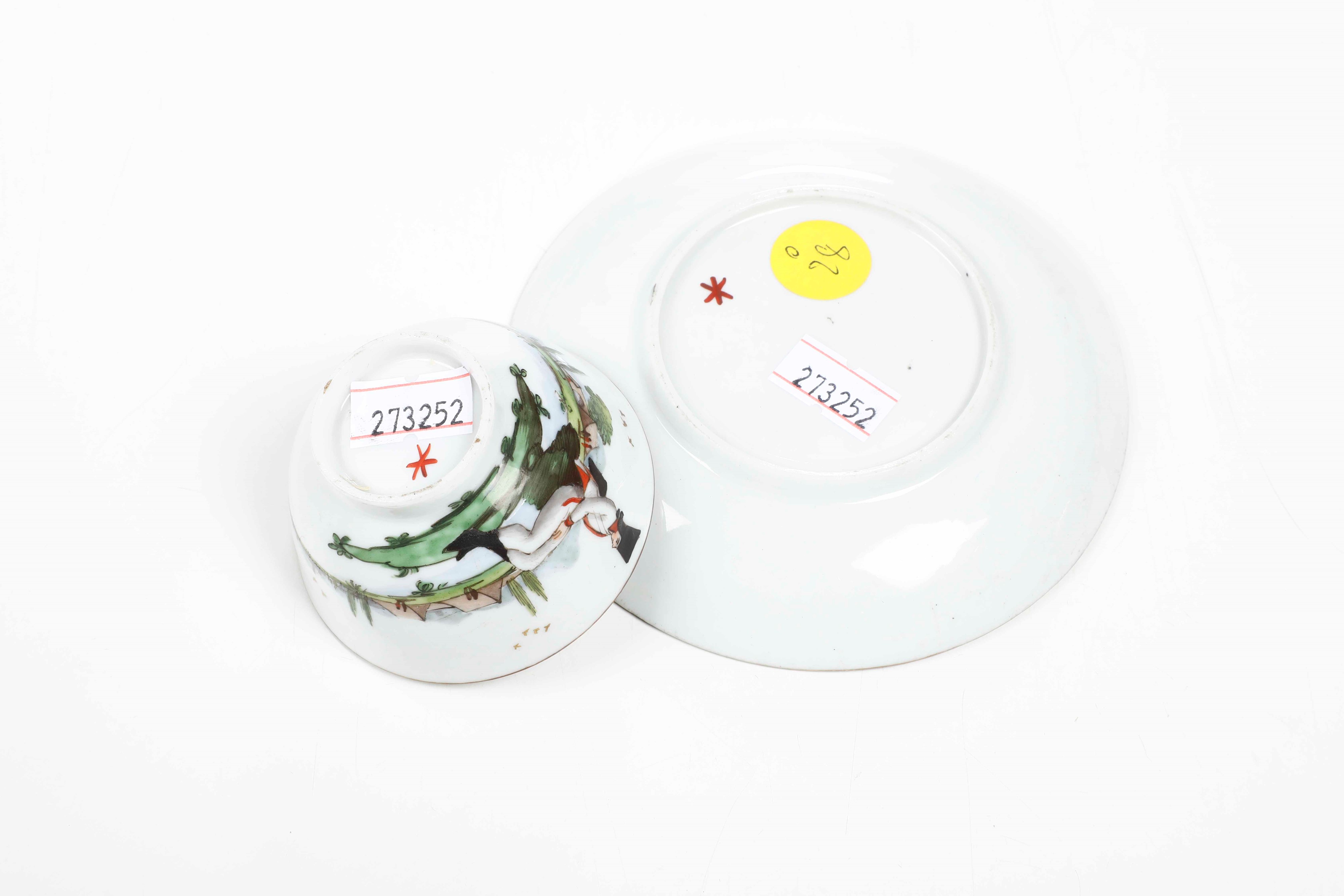 Porcelain. Brand: star in red. Cup height 3.9 cm; saucer diameter 11.6 cm. Conservation: very good