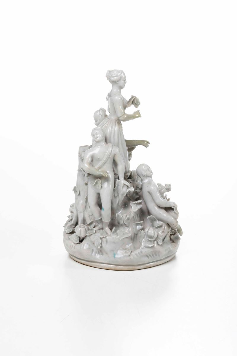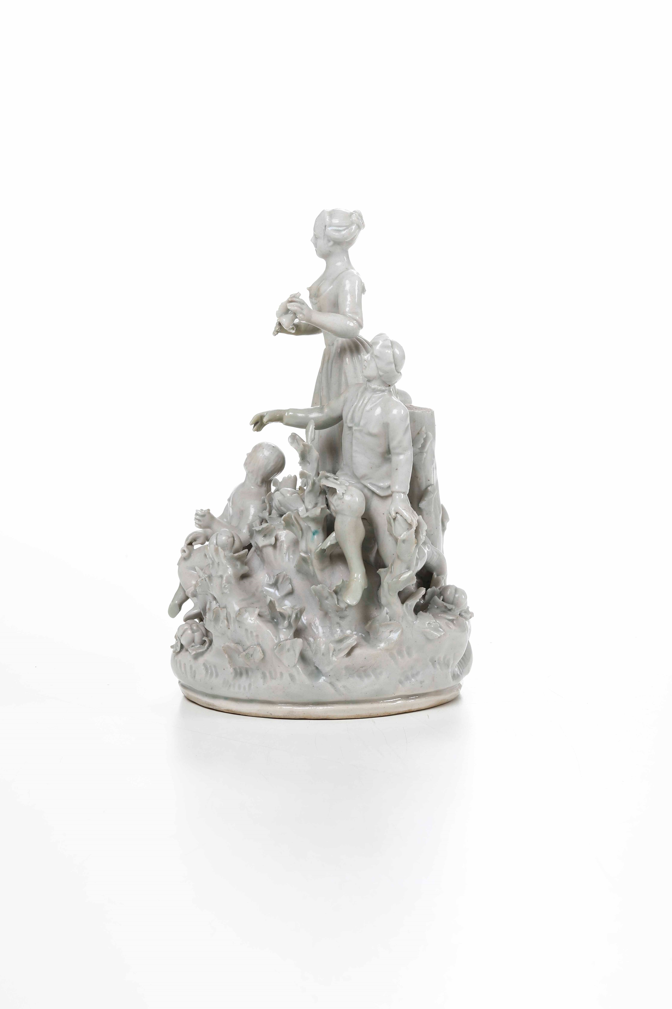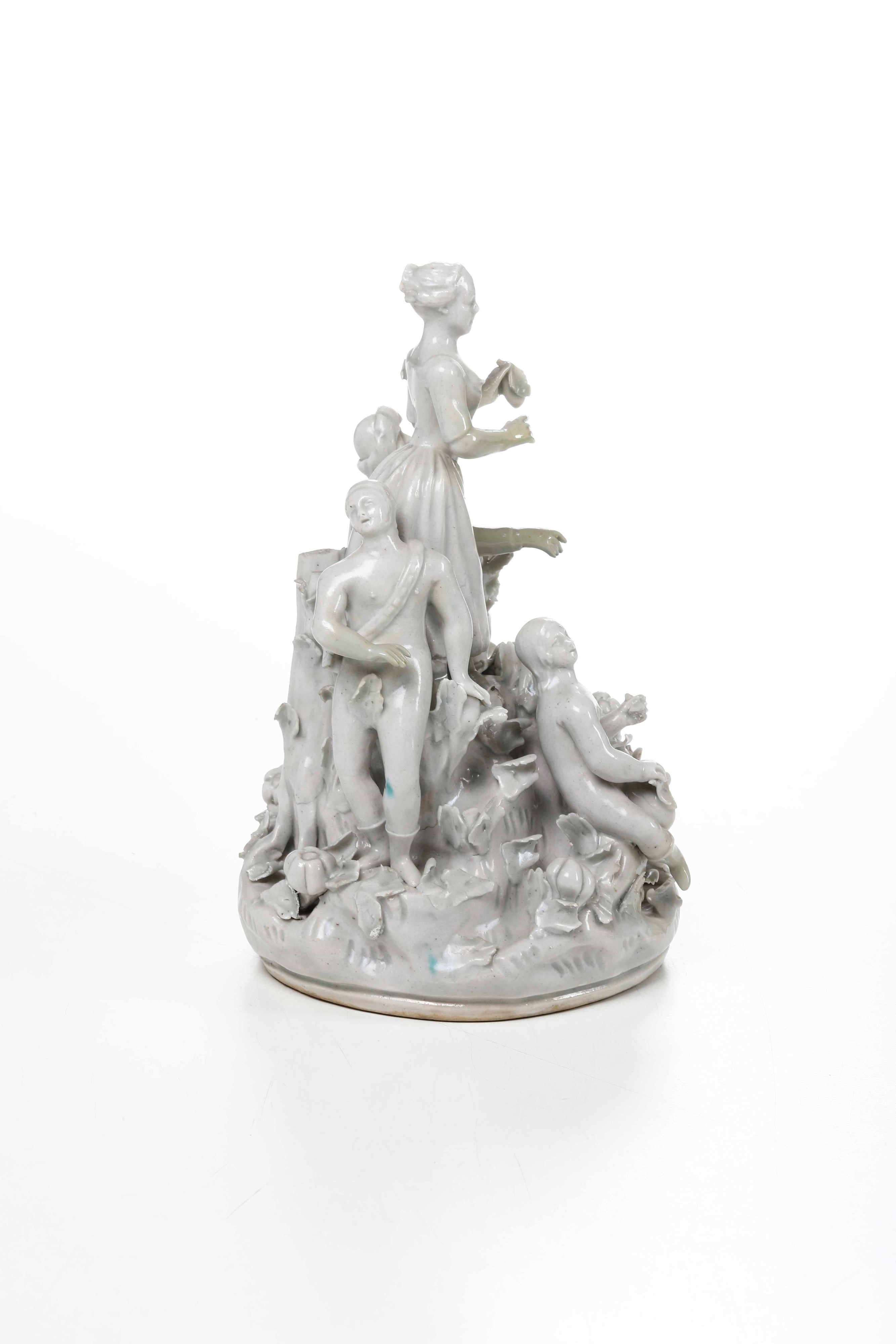White porcelain. Brand name absent. Height 20.6 cm. Conservation: lacking on the shaft; restorations to three arms and two feet; minor cracks to the vegetation