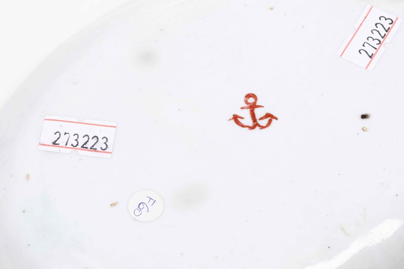 Porcelain. Brand: anchor in red. Dimensions 18.4x13.1 cm. Conservation: very good; small chipping to the rear edge with short felting