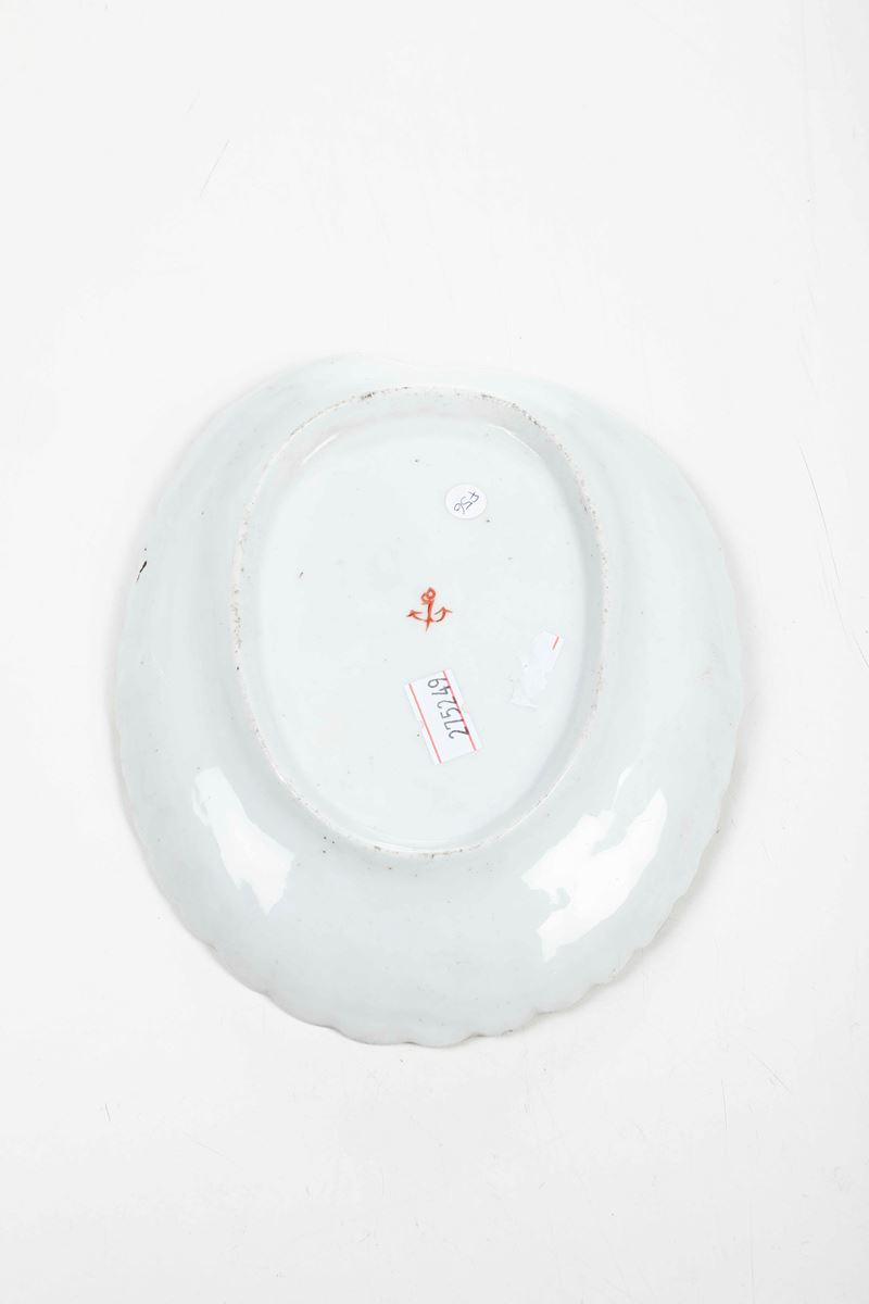 Porcelain. Brand: anchor in red. Dimensions: 18.4x15.4 cm. Conservation: very good; insignificant wear to the polychrome