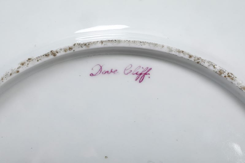Porcellana. Marca: "Dove Cliff" in porpora e corona con "FBB" impresso. Diametro cm 24,2. Conservazione: ottima