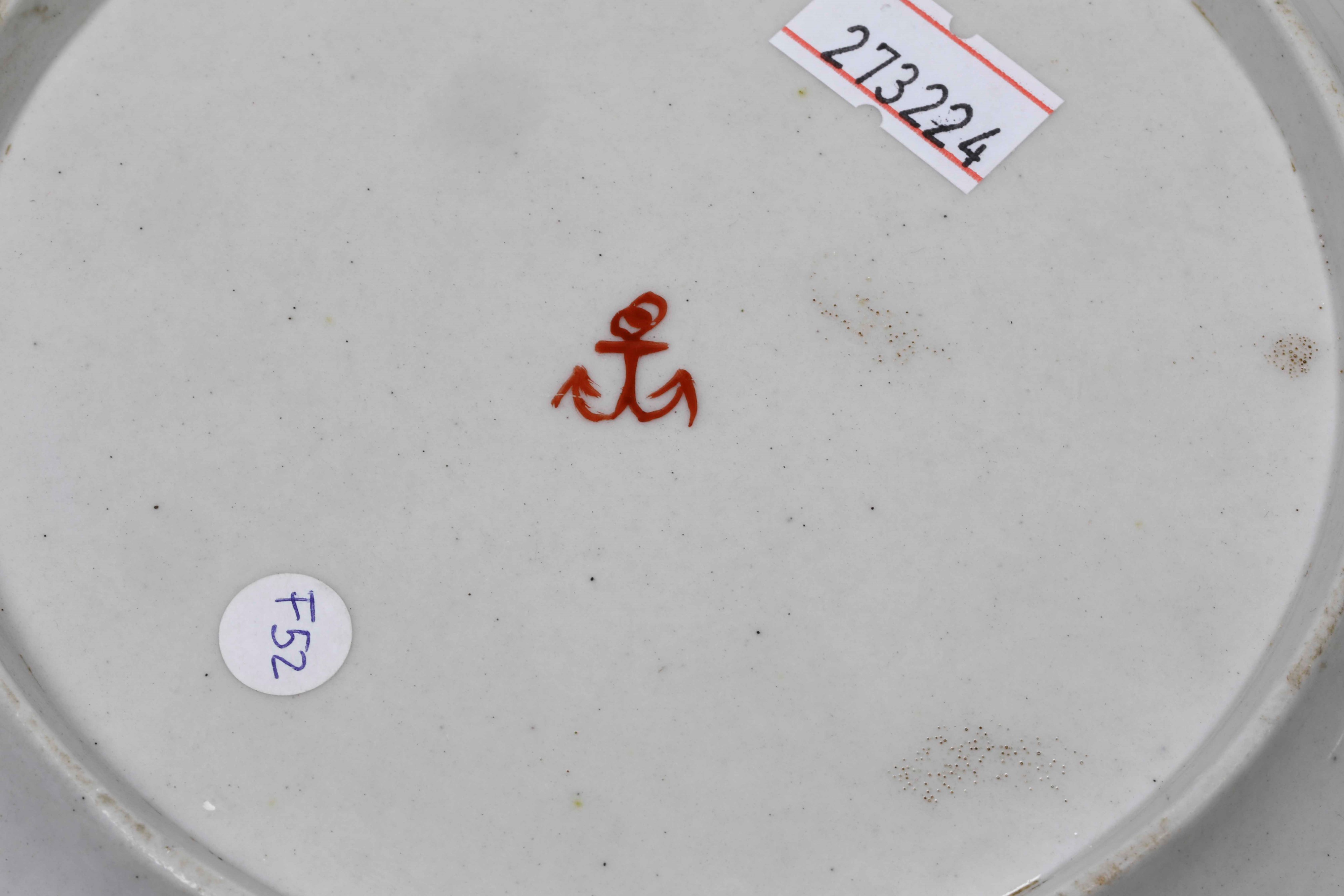 Porcelain. Brand: anchor in red. Diameter: 21.9 cm. Conservation: very good; insignificant wear to the gold