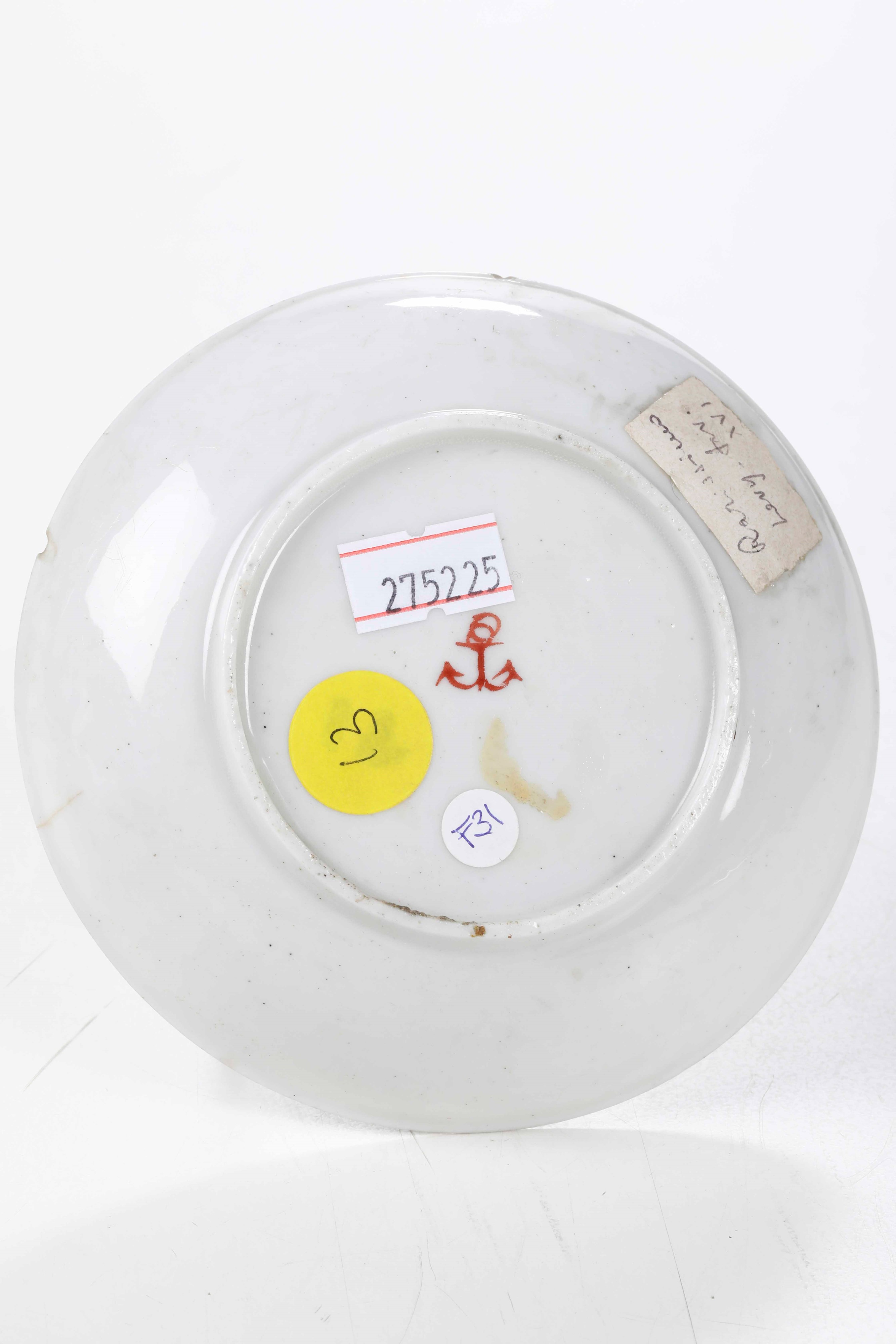 Porcelain. Brand: anchor in red. Diameter 11.5 cm. Conservation: insignificant chipping and felting to the rim
