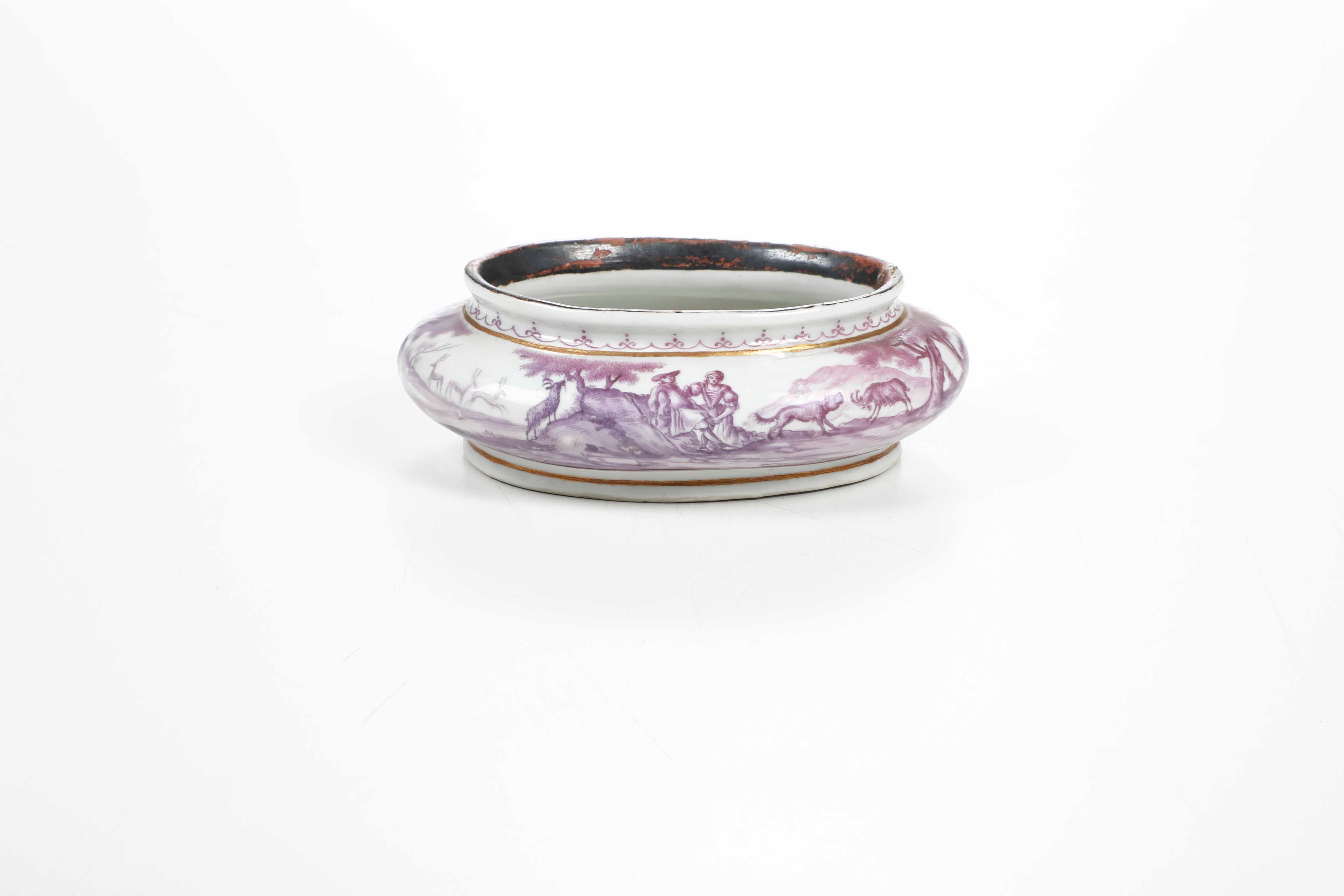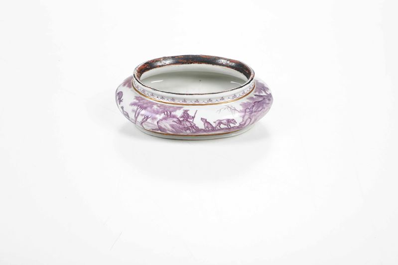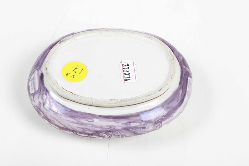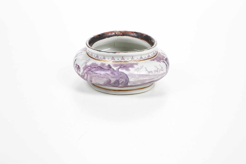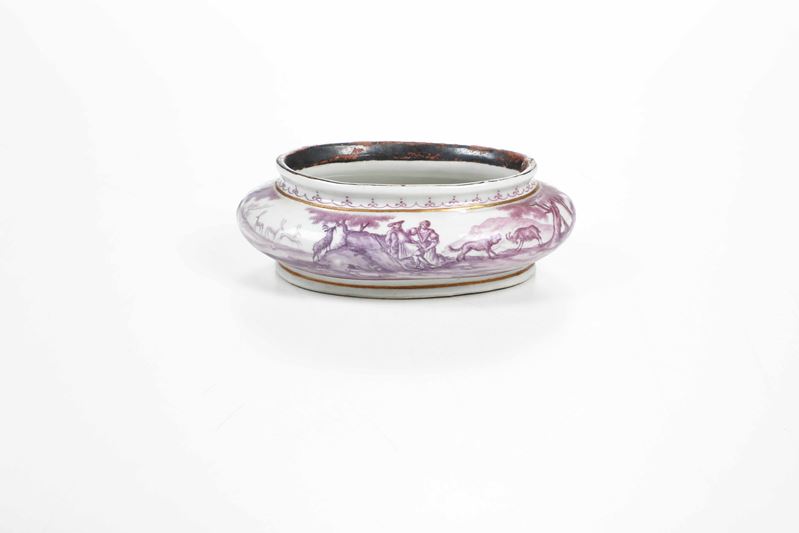 Porcelain. Brand: absent. Dimensions: height 4.2 cm; 12.3x9.7 cm. Conservation: chipping to upper edge; lid missing