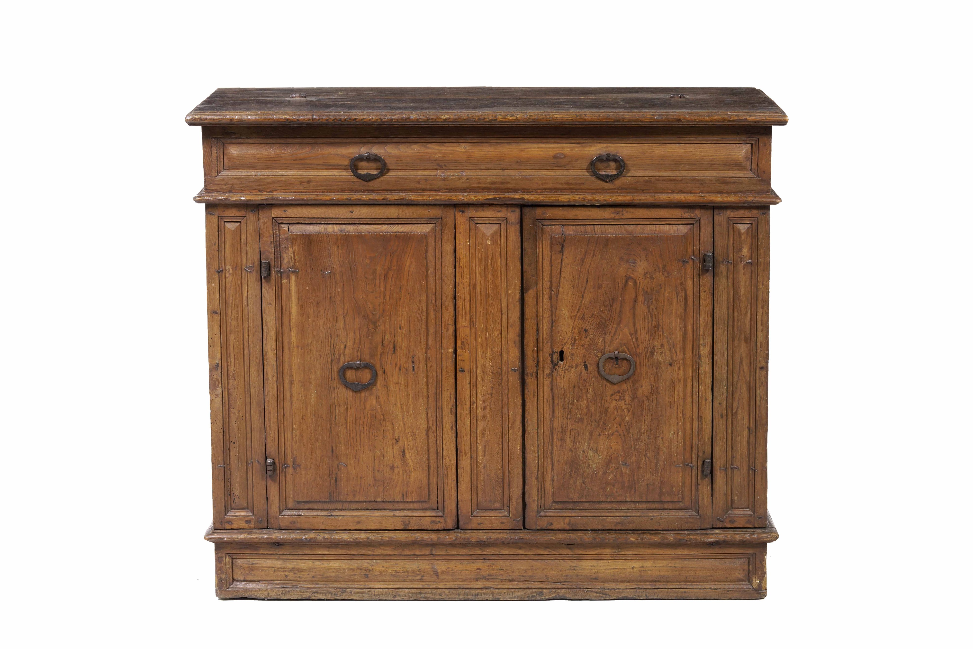Madia in legno tenero scurito a due ante e piano apribile. Italia settentrionale, XVIII secolo