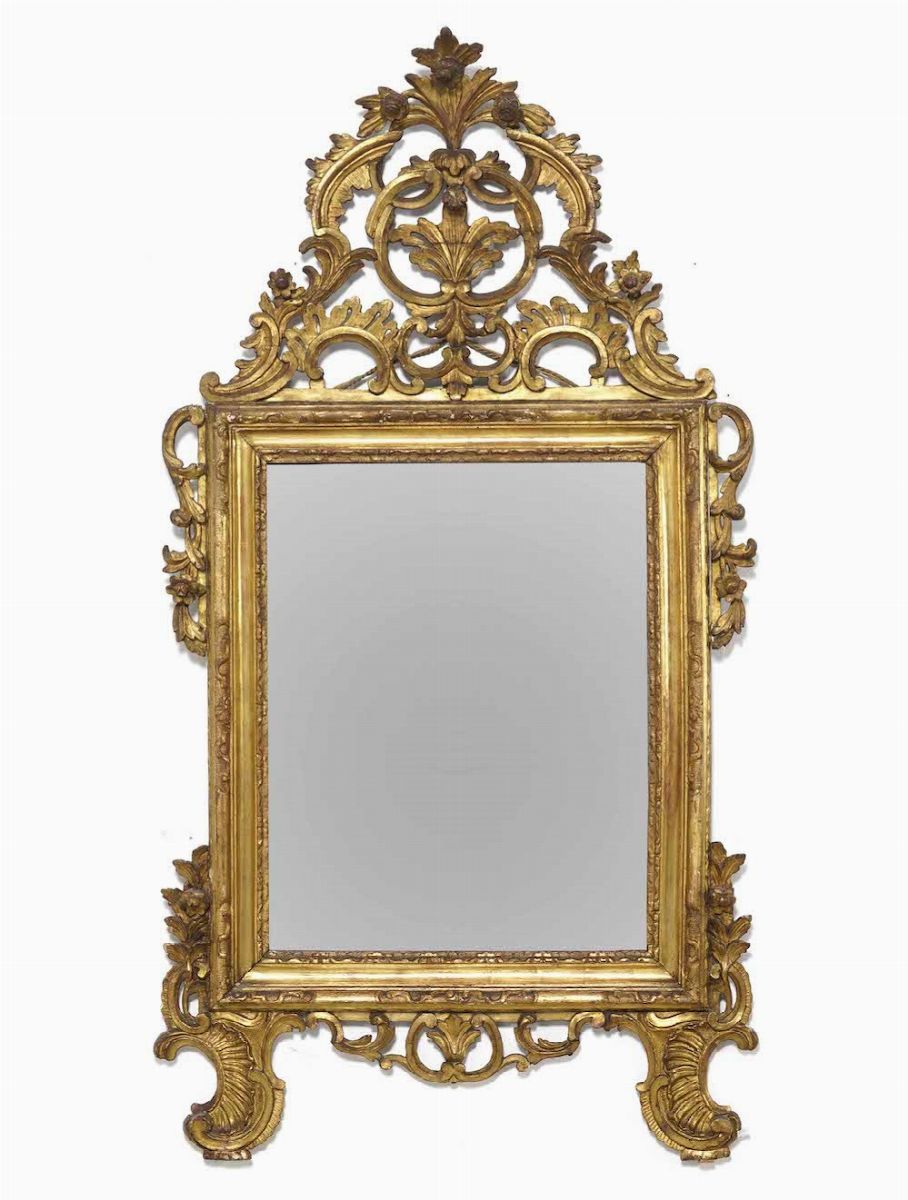 Specchiera in legno intagliato, traforato e dorato. XXVIII-XIX Secolo