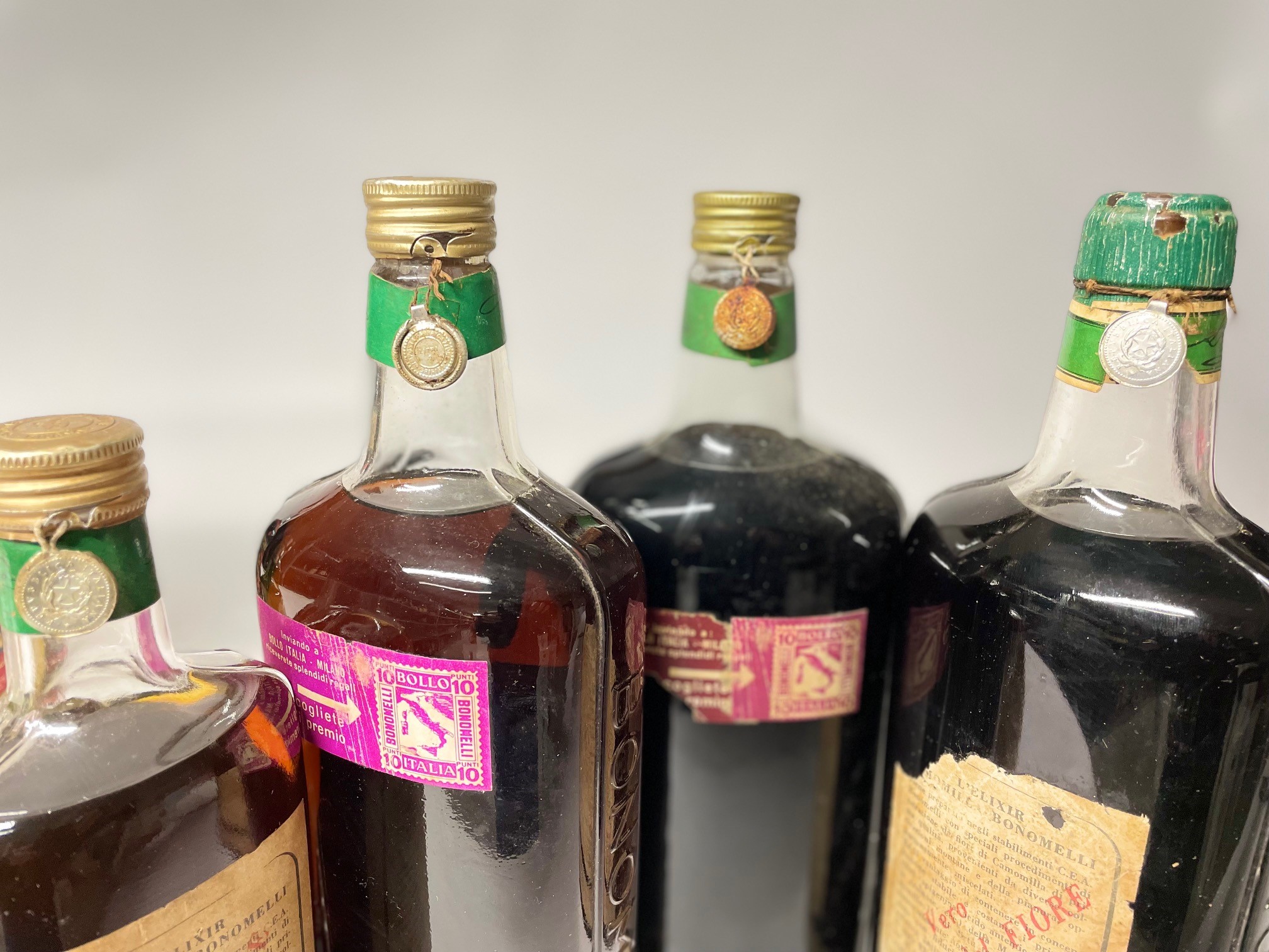 etichette e capsule con segni d'usura del tempo