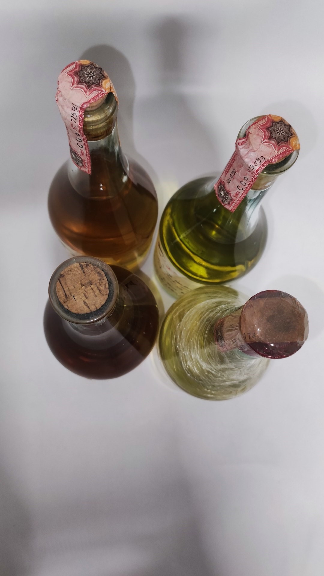 etichette e capsule con segni d'usura del tempo