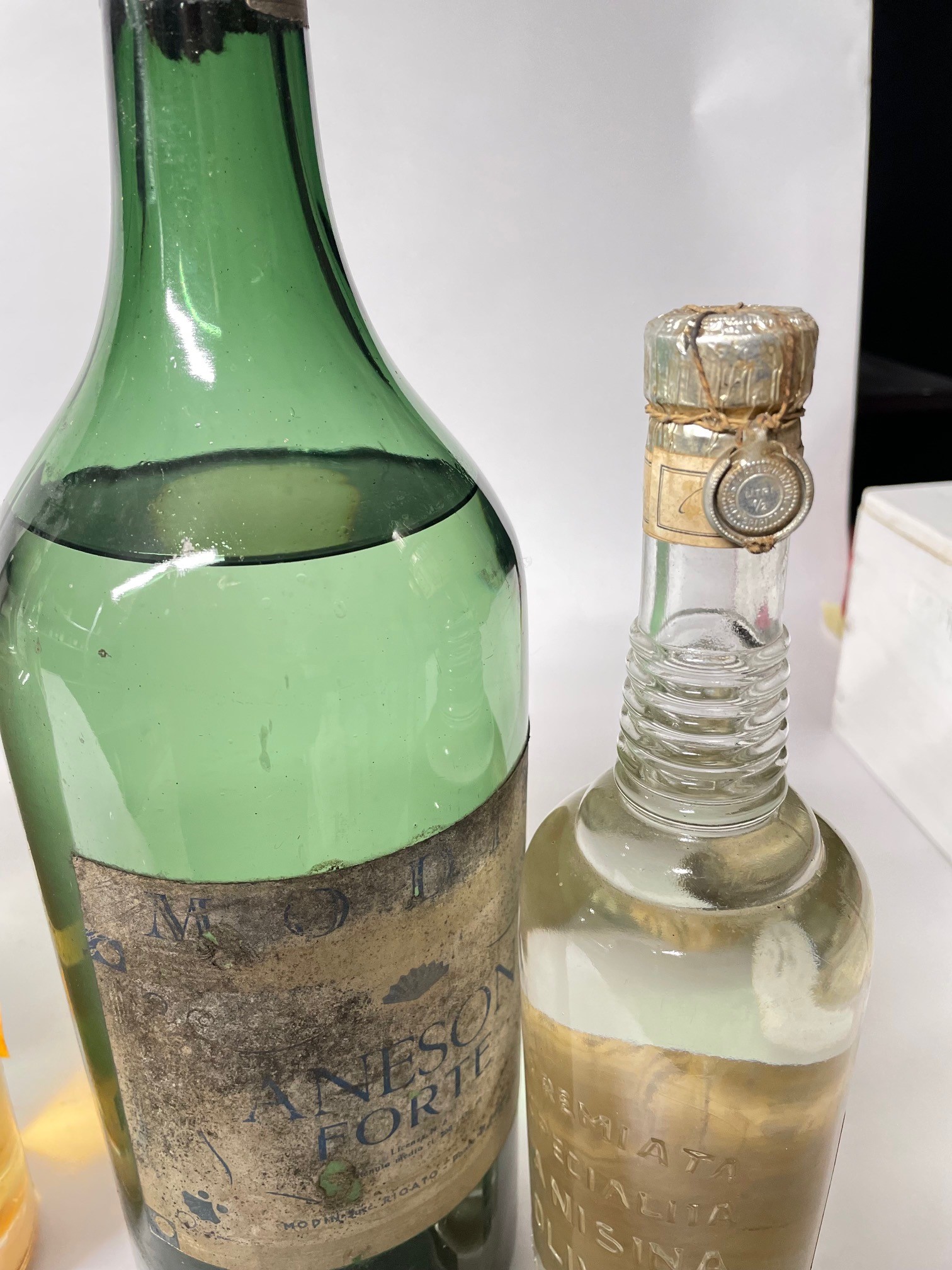 etichette e capsule con segni d'usura del tempo