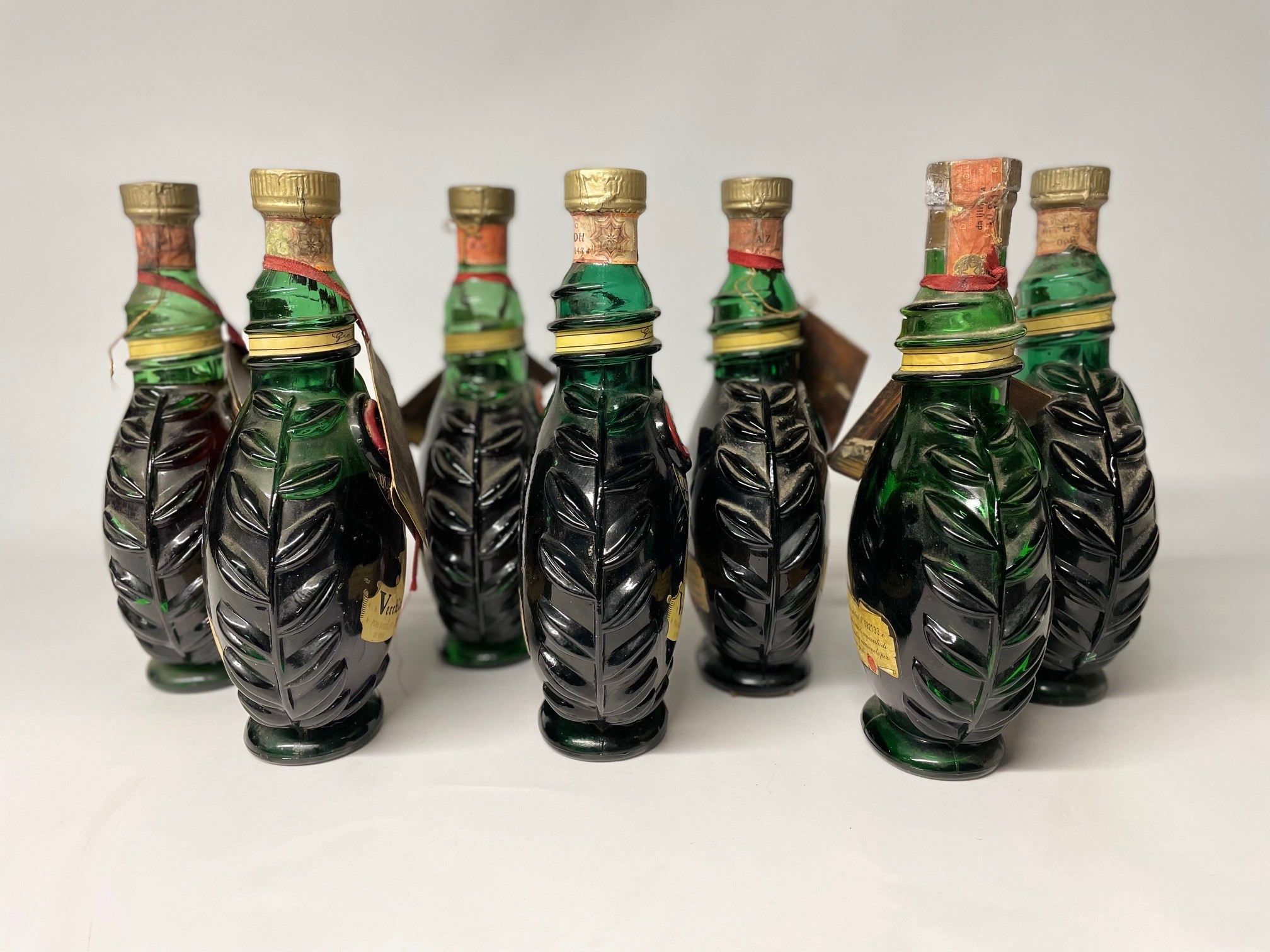 etichette e capsule con segni d'usura del tempo