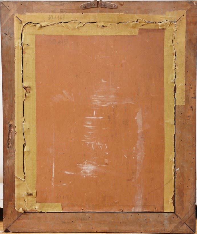 Monogramma dell’autore in basso al centro. Discreto esemplare di questa celebre xilografia del maestro tedesco, stampata su carta vergellata. Purtroppo essendo stata incollata in epoca successiva su un cartoncino più ampio, risulta impossibile individuare eventuale presenza di filigrane. Riteniamo tuttavia si tratti di una tiratura antica, databile tra la fine del XVI e gli inizi del XVII secolo. Entro cornice in legno.