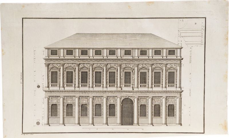 Bertotti Scamozzi Ottavio Le fabbriche e i disegni di Andrea Palladio, raccolti e illustrati da Ottavio Bertotti Scamozzi, opera divisa in quattro tomi con tavole in rame... seconda edizione. In Vicenza, per Giovanni Rossi,1786.