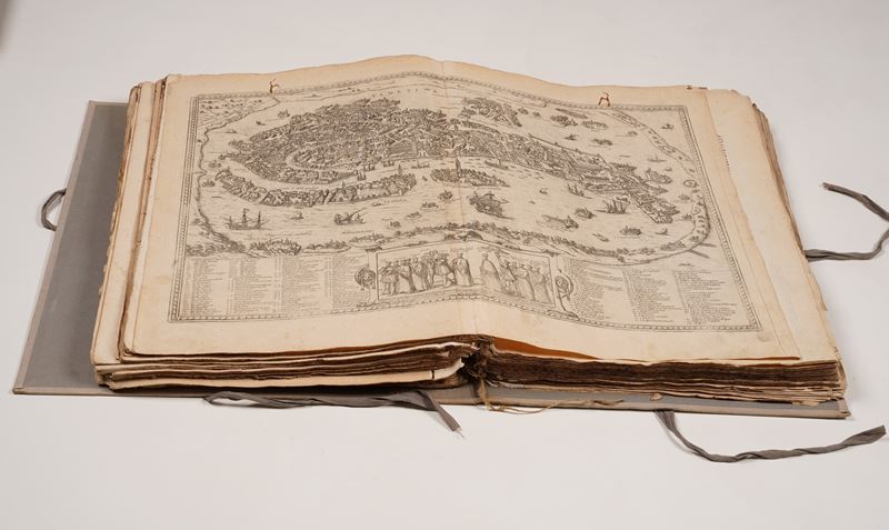 Quattro parti in folio. Raccolta di più di duecento incisioni, molte delle quali a doppia pagina raffiguranti le città del mondo. Mancano alcune tavole, sono presenti numerosi difetti e gallerie di tarlo. L'insieme è proposto come collezione di stampe. Disponibili su richiesta un elenco delle tavole presenti
