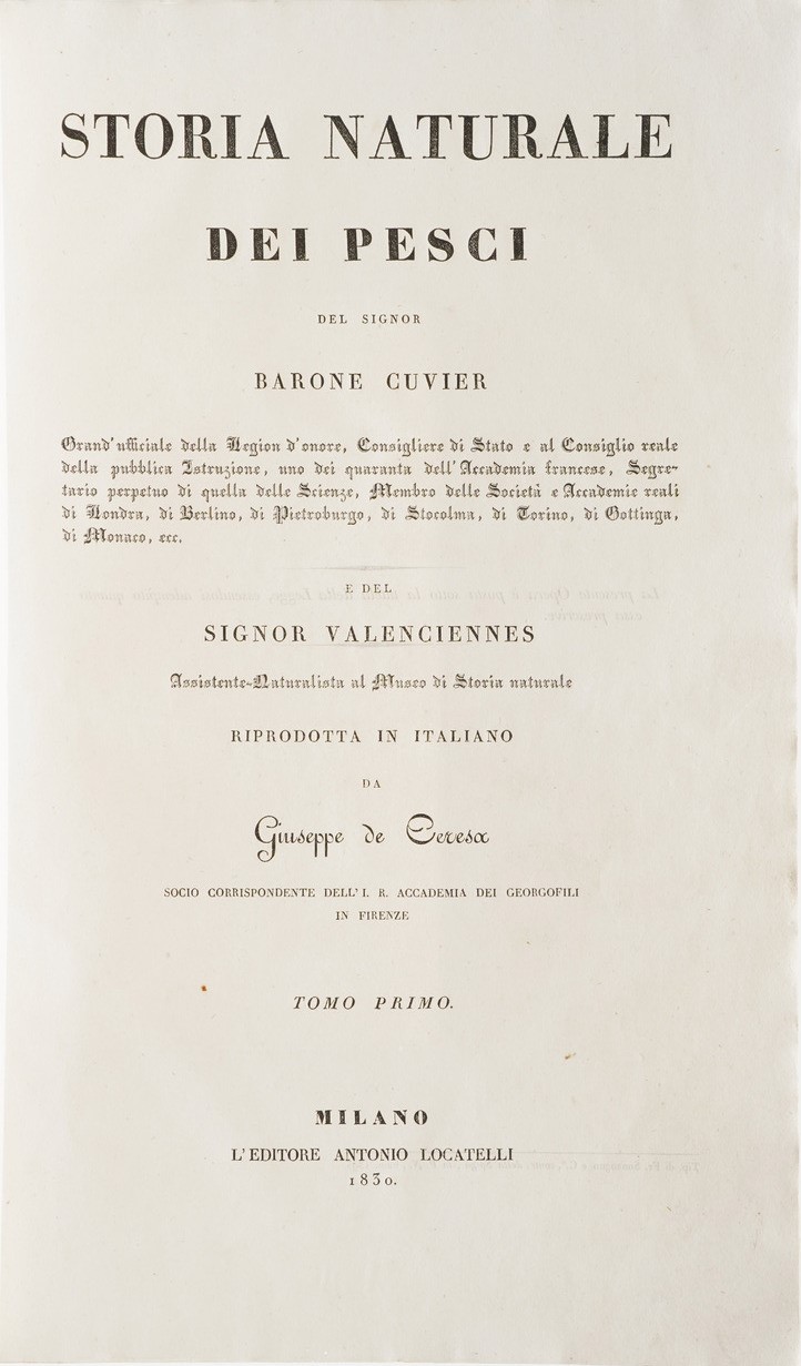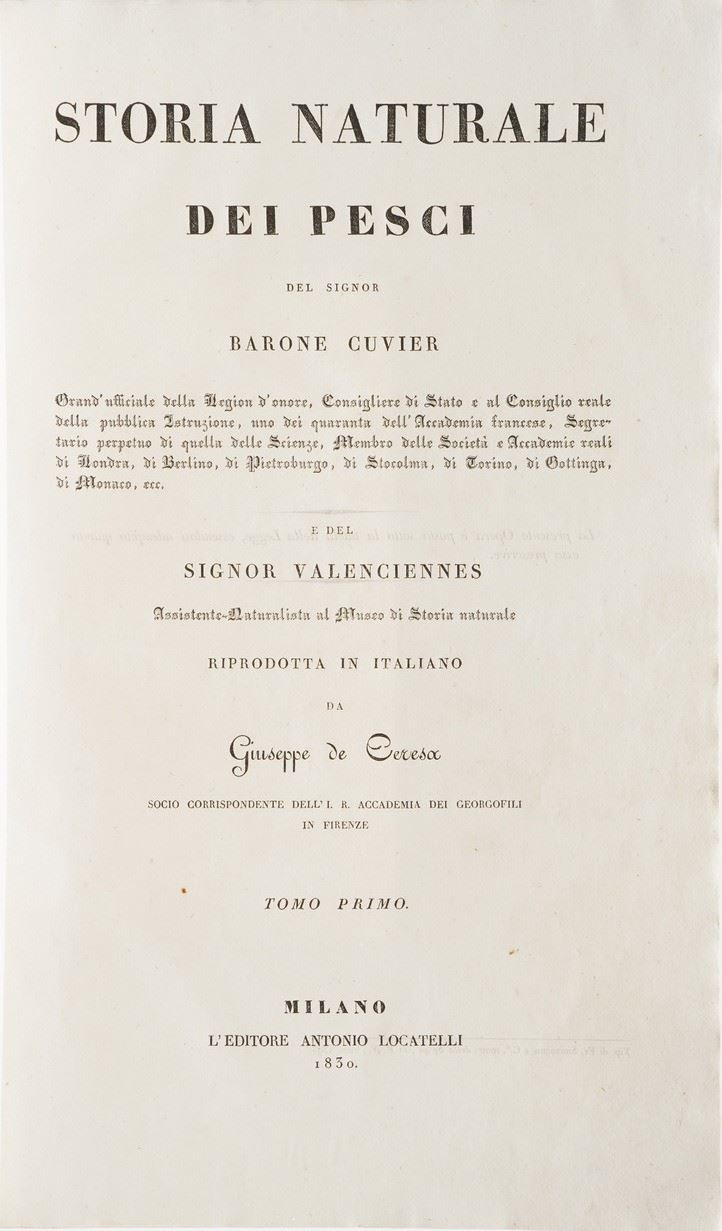 Geoffroy Saint Hilaire- Federico Couvier- Giuseppe De Seresa Storia naturale dei pesci...Milano Locatelli 1830; Storia naturale [..]