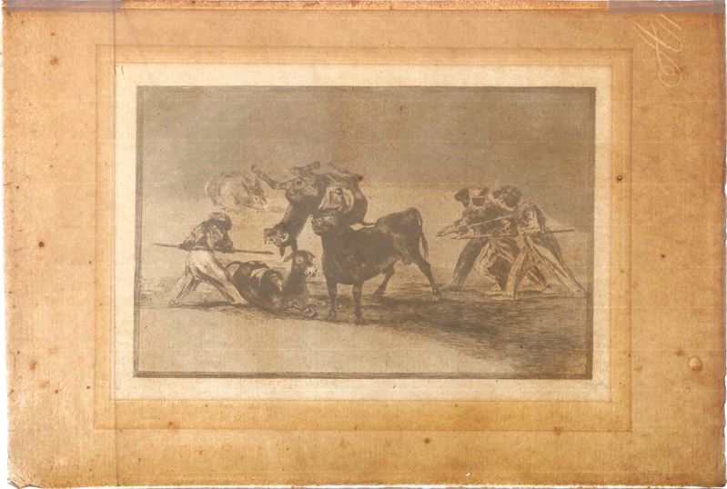 Goya Francisco (Fuendetodos, 1746 – Bordeaux, 1828) Palenque de los moros hecho con burros para defenderse del toro embolado