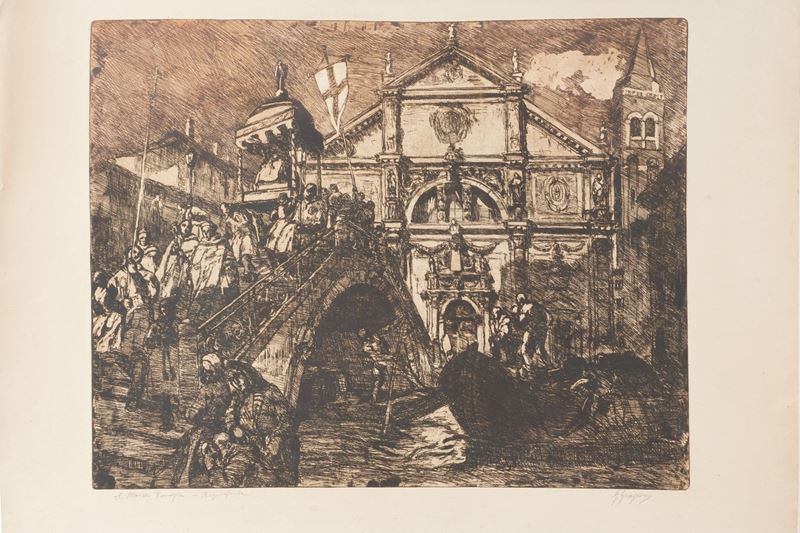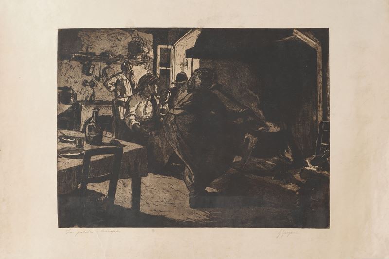 Graziosi Giuseppe (1879 - 1942) Dieci grandi incisioni all'acquaforte rappresentanti soggetti diversi: natività, scene della vita quotidiana, vedute di Roma, vedute di Venezia.