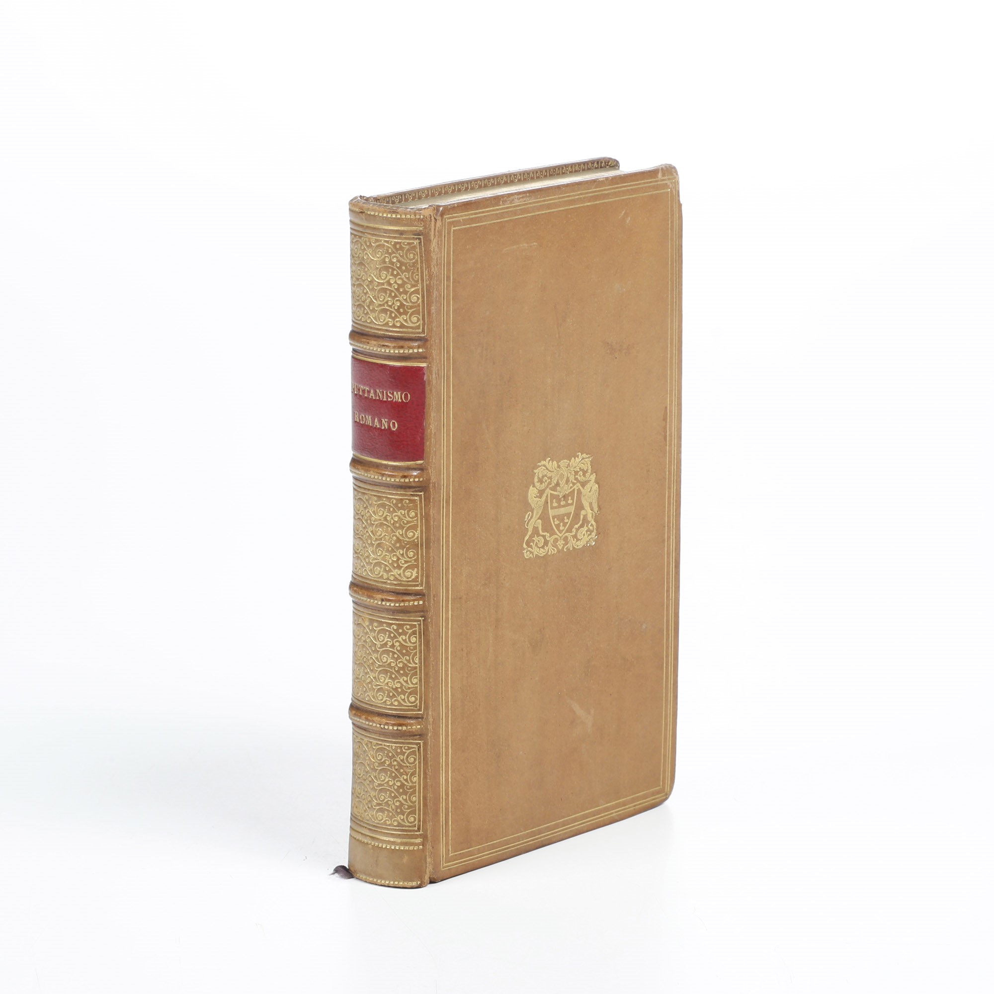 In-12°. Bellissima rilegatura del secolo XIX, presumibilmente inglese, firmata Ottman- Duplanil. Ricchi fregi in oro al dorso. Armi nobiliari in oro ai due piatti. Tagli dorati. Leggere fioriture, per altro esemplare assai bello.
