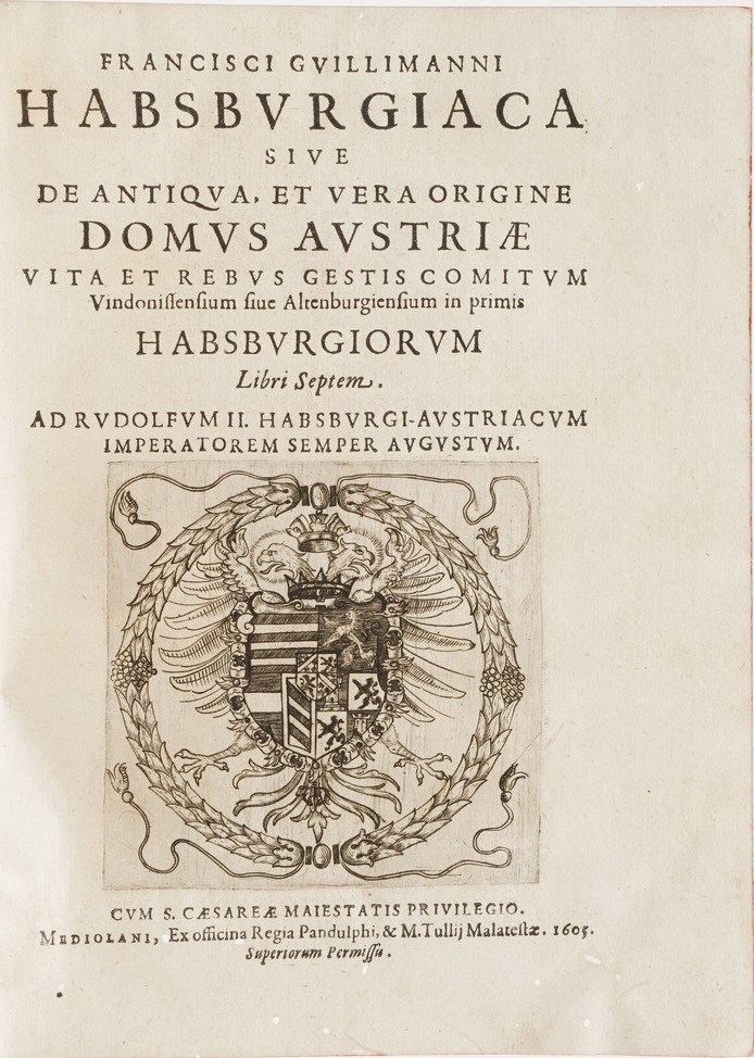 Guillimannus Franciscus Francisci Guillimanni Habsburgiaca sive de antiqua, et vera origine Domus Austriae...Mediolani, ex officina regia Pandulphi e Malatestae, 1605