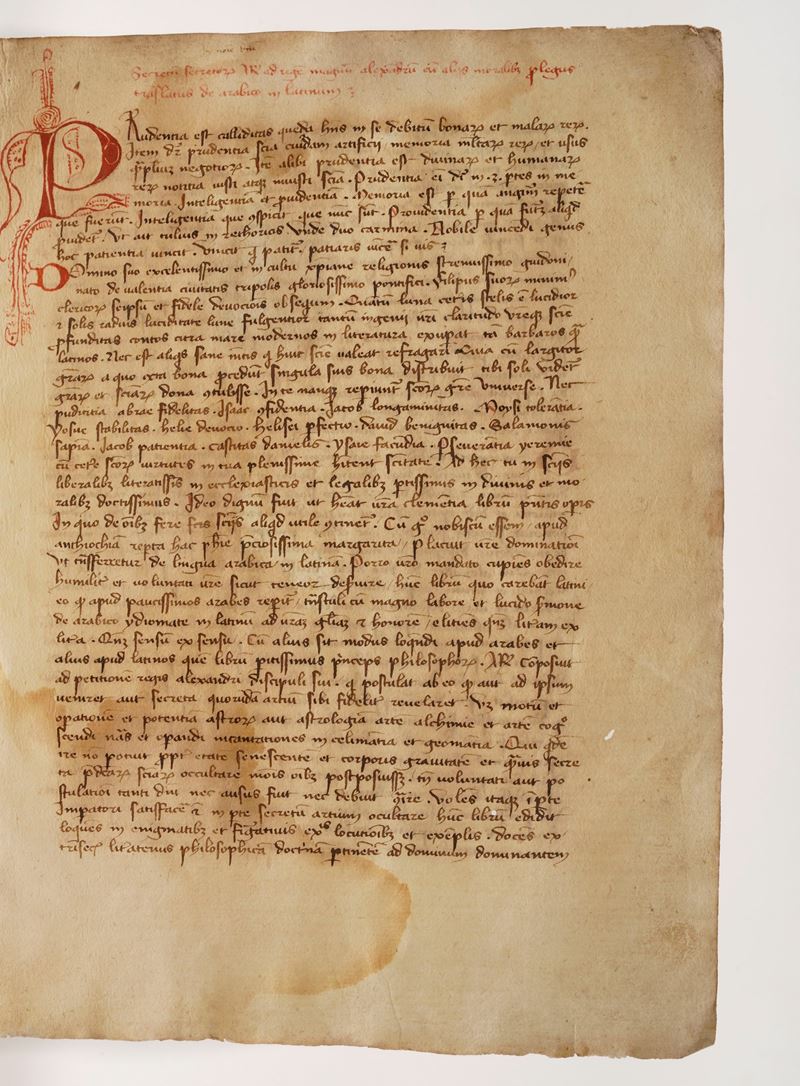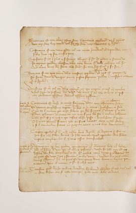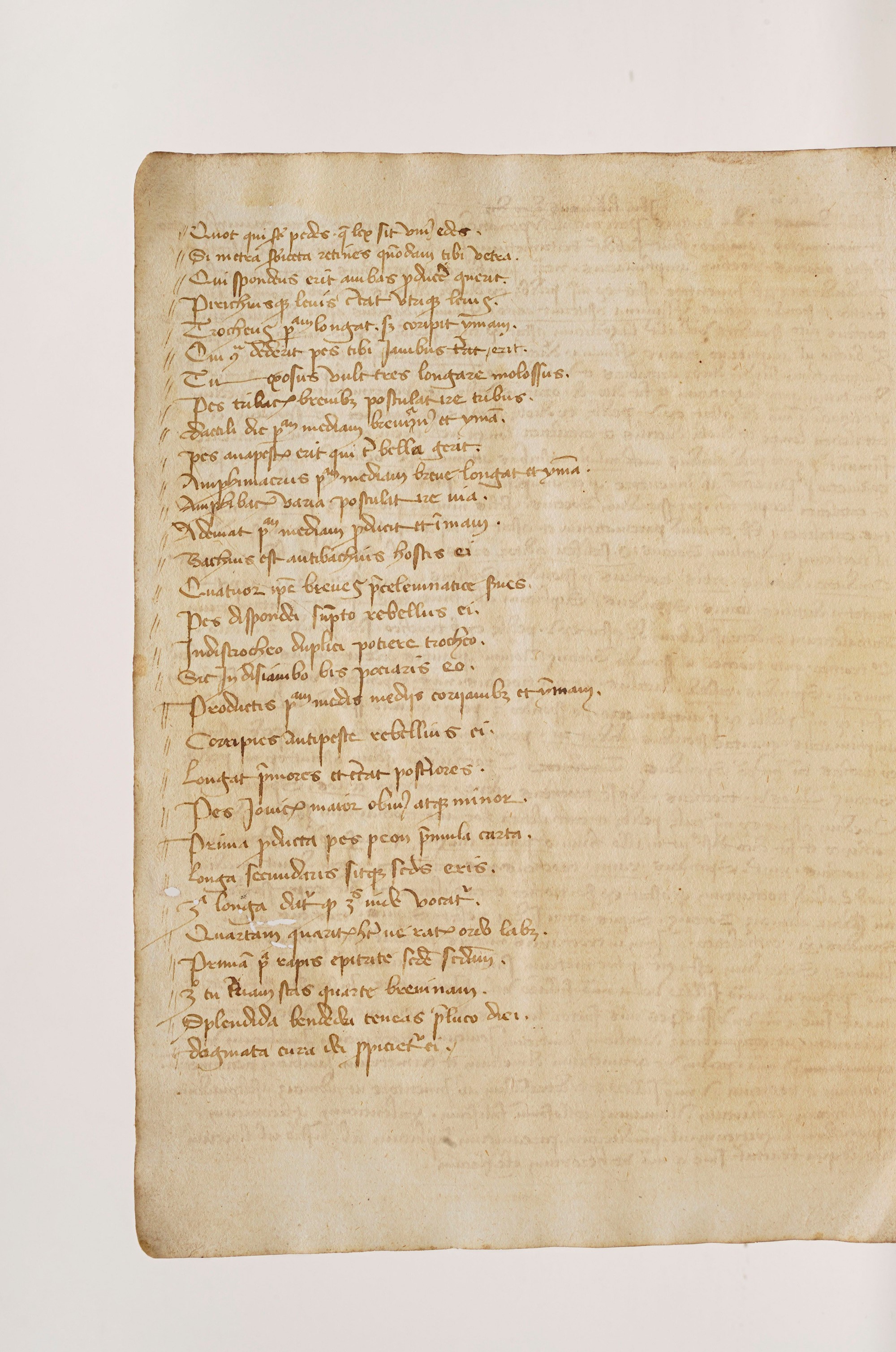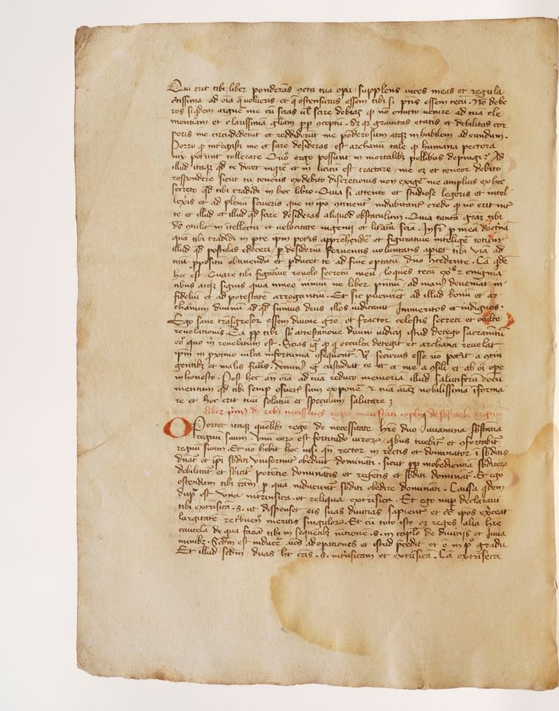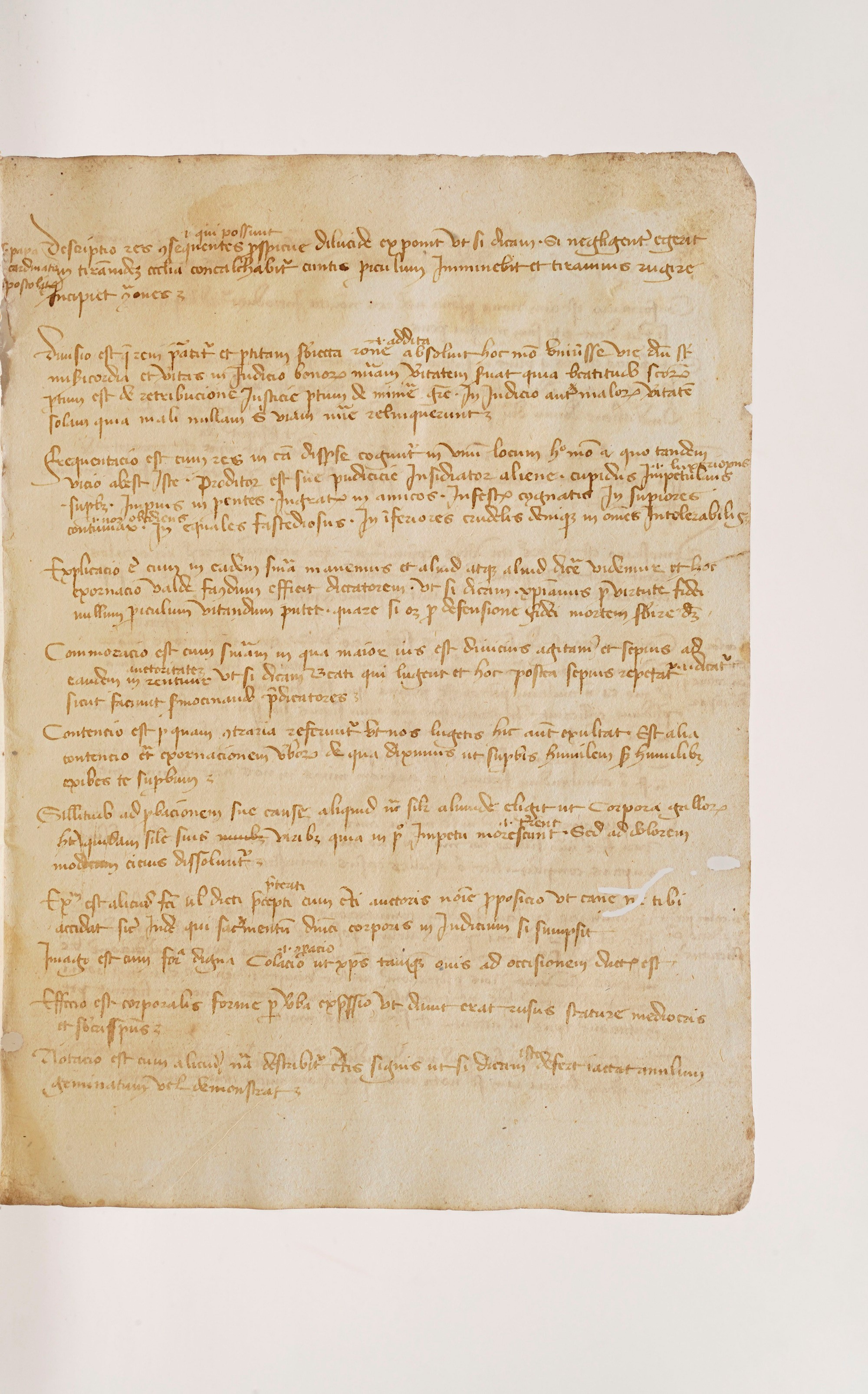 Manoscritto composto da 46 fogli non numerati. Rilegatura coeva in piena pergamena morbida, staccata e con danni da roditore. La carta utilizzata presenta una filigrana rappresentante una scimmia (Reggio Emilia, prima metà del secolo XIV). Libro Miscellaneo che tratta diverse materie. Ad una prima analisi sembrerebbe essere stato compilato da almeno due mani diverse. Interessante e meritevole di approfondimento e di studio.