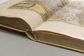 In folio (mm. 414x272); rilegatura antica in piena pergamena rigida, con tassello recante il titolo, applicato al dorso, entro cofanetto protettivo moderno. 53+18 carte geografiche a piena pagina, tutte in bella coloritura. La prima parte è in seconda edizione e contiene lo stesso numero di tavole della prima. La seconda parte, è in prima edizione latina, e contiene rispetto alla prima edizione in tedesco due tavole in più.