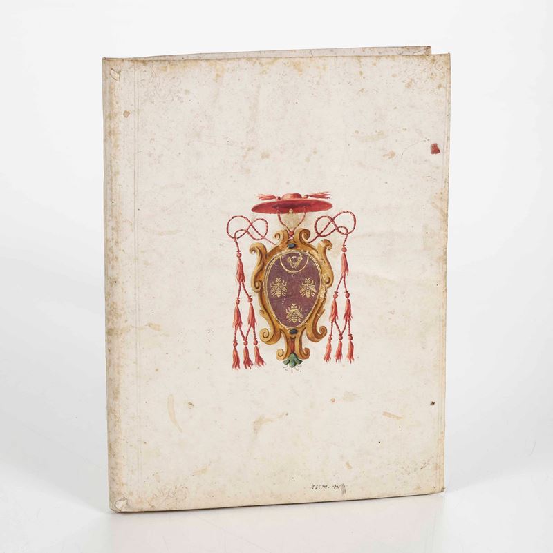In-4°. Rilegatura coeva in pergamena floscia con stemma cardinalizio Barberini miniato sui due piatti. 127 pagine numerate seguite da alcune carte bianche.