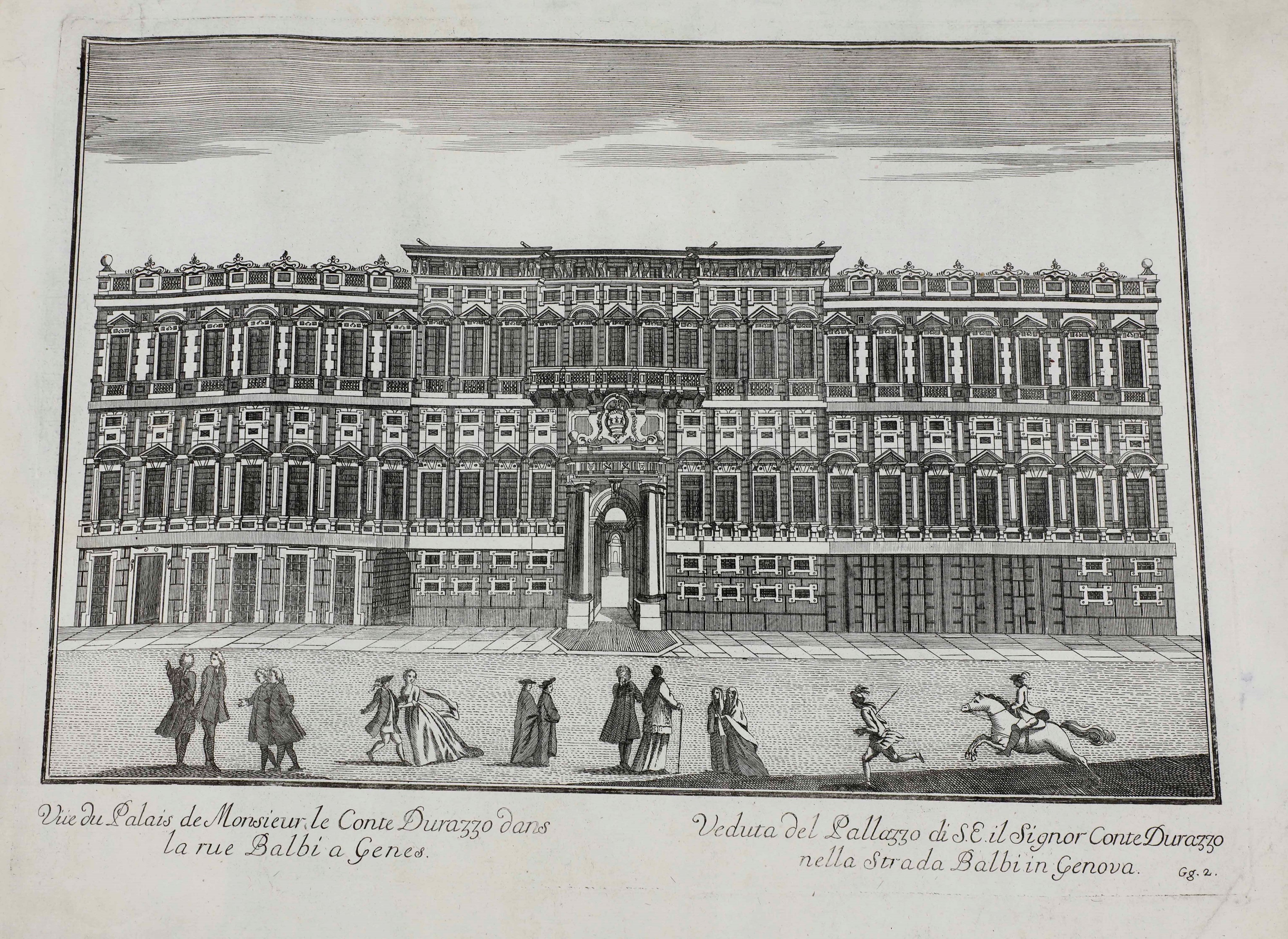 -Genova, Veduta del Palazzo di S.E. il Signor Conte Durazzo nella strada Balbi in Genova, 42,5x32 cm. Venezia, Remondini, 1700.