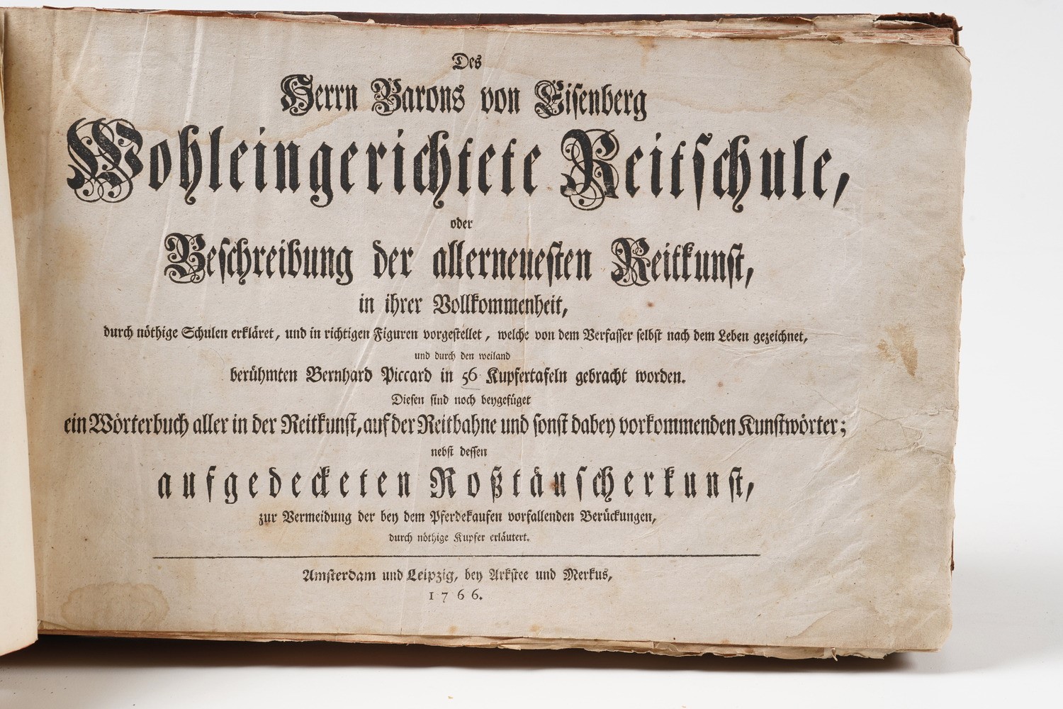 Volume FW Eisenberg, Wohleingerichtete Reitschule Betfchreibung der allerneueften reittunft...Amsterdam und leipzip, ben artftee und merltus 1766