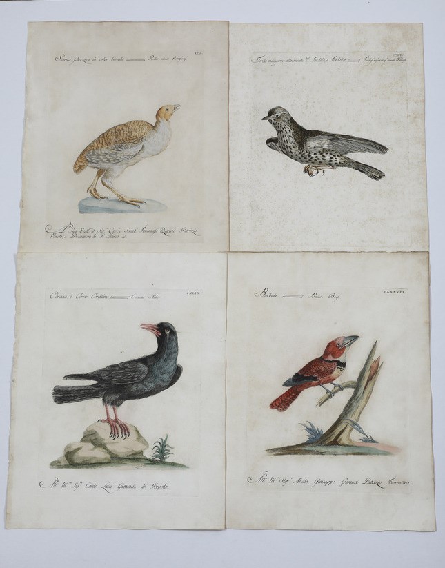 Dieci tavole sciolte, provenienti dalla celebre opera che il Manetti dedico all'ornitologia. Bella coloritura coeva.