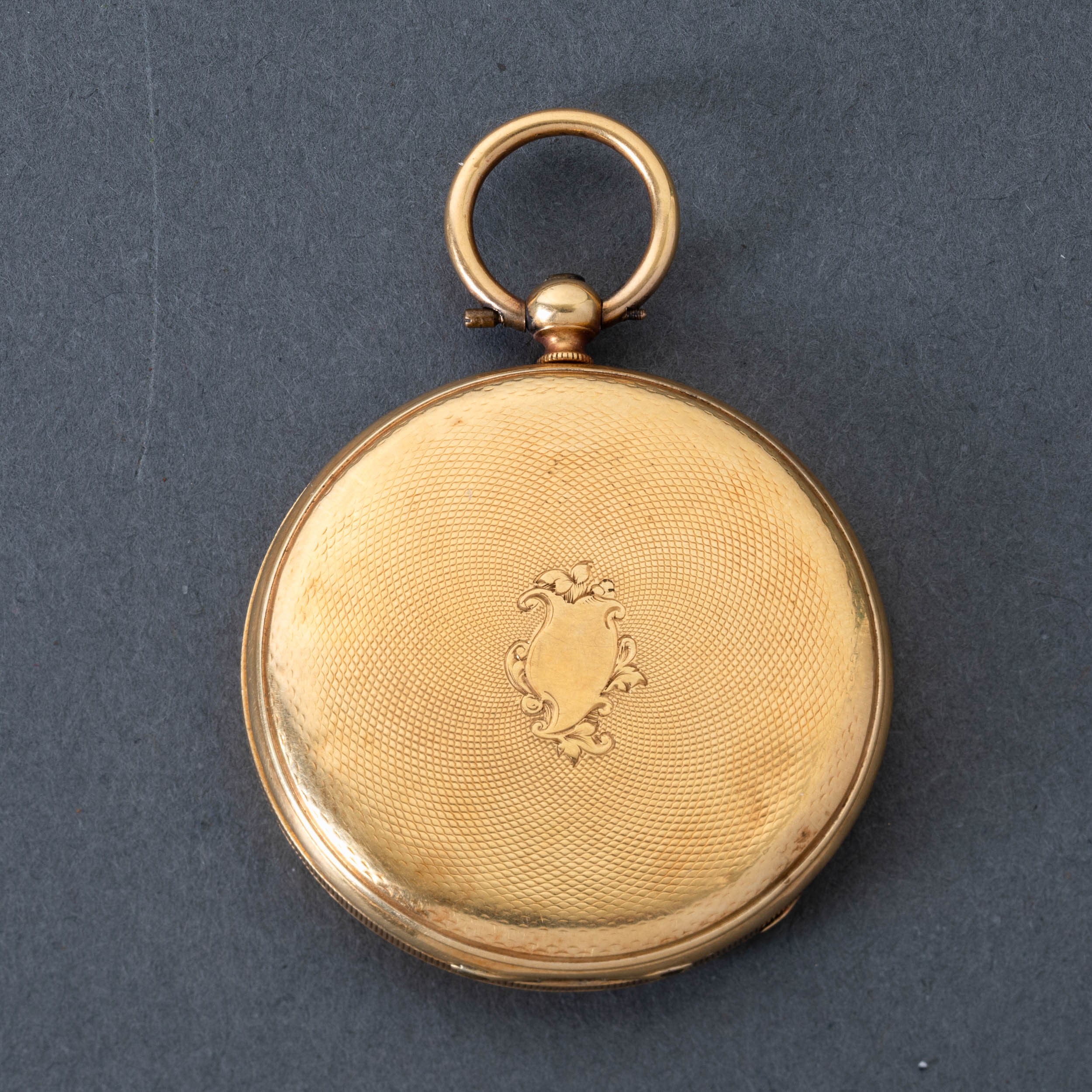 orologio da donna, 1860 circa, in oro 18 k, firmato vacheron freres su couvette in metallo, movimento a cilindro, si stacca il vetro, mm 36, gr 30