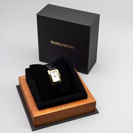 Baume & Mercier Tank lady in oro giallo 18k con quadrante Argentè piccoli secondi al sei, cinturino in pelle nero, 21x28 mm, 2003 circa, scatola e garanzia